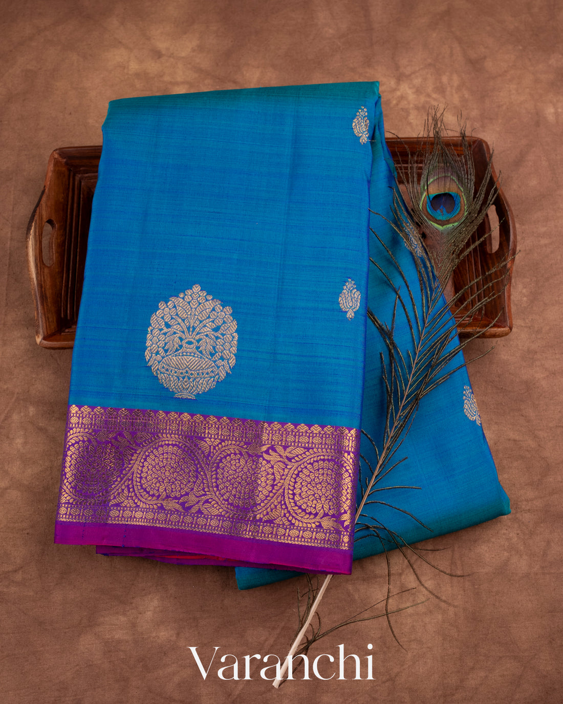 Peacock Blue Pure Kanchipuram Silk Handloom Saree