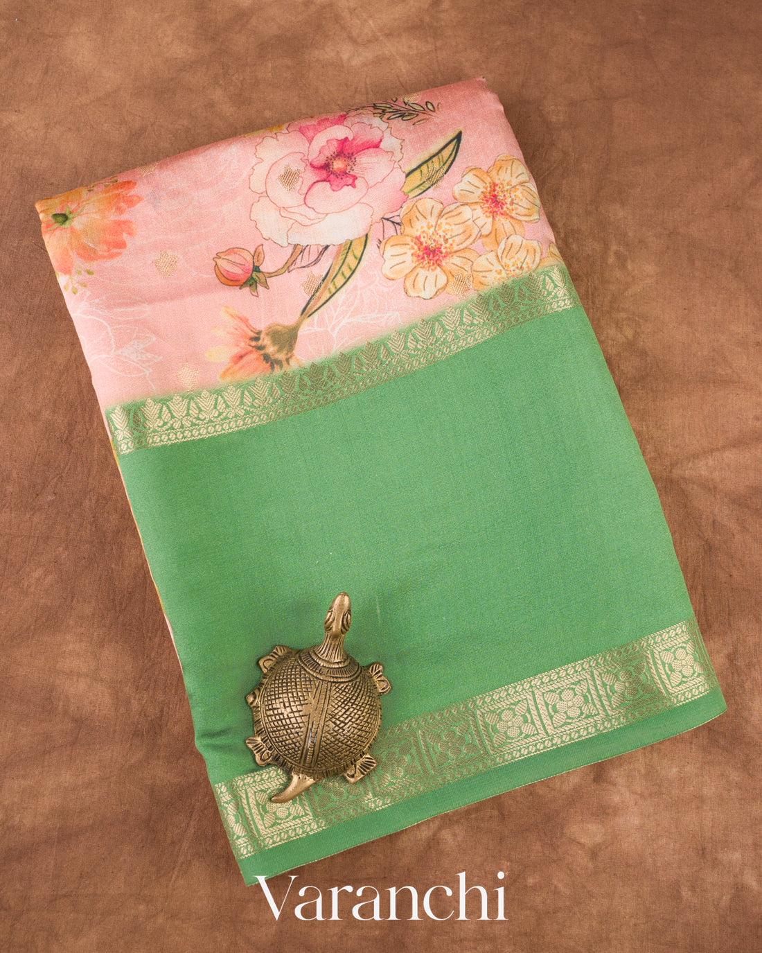 Blush Peach Pink Digital Printed Pure Chiniya Silk Saree