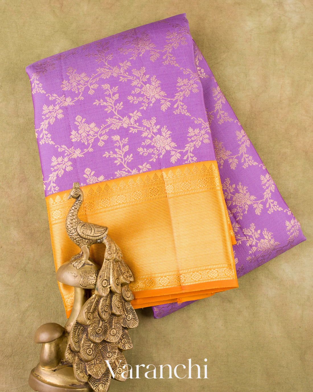 Lavender Heavy Brocade Pure Kanchipuram Silk Saree