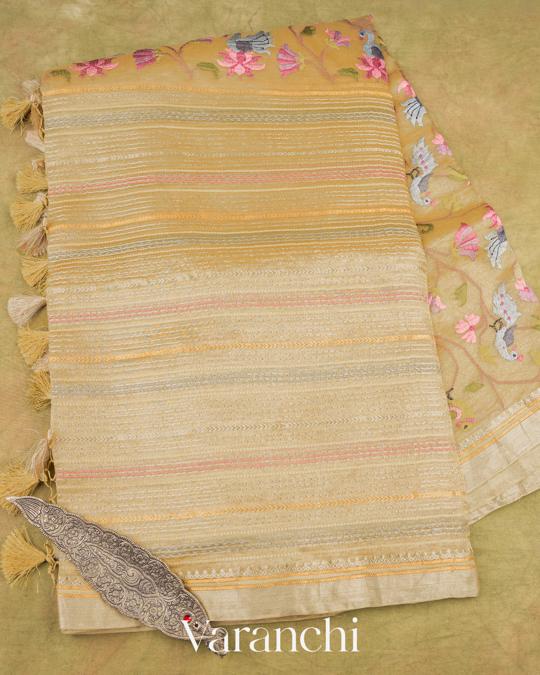 Golden Embroidered Pure Tissue Kota Silk Saree