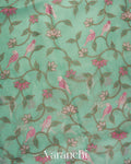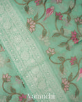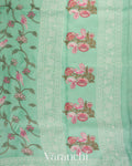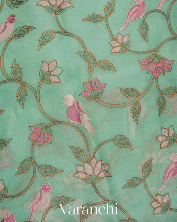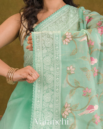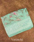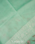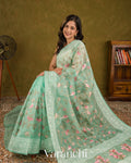 Aqua Blue All-Over Embroidered Pure Kora Silk Saree