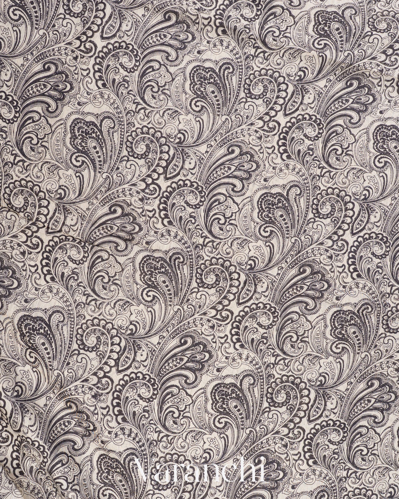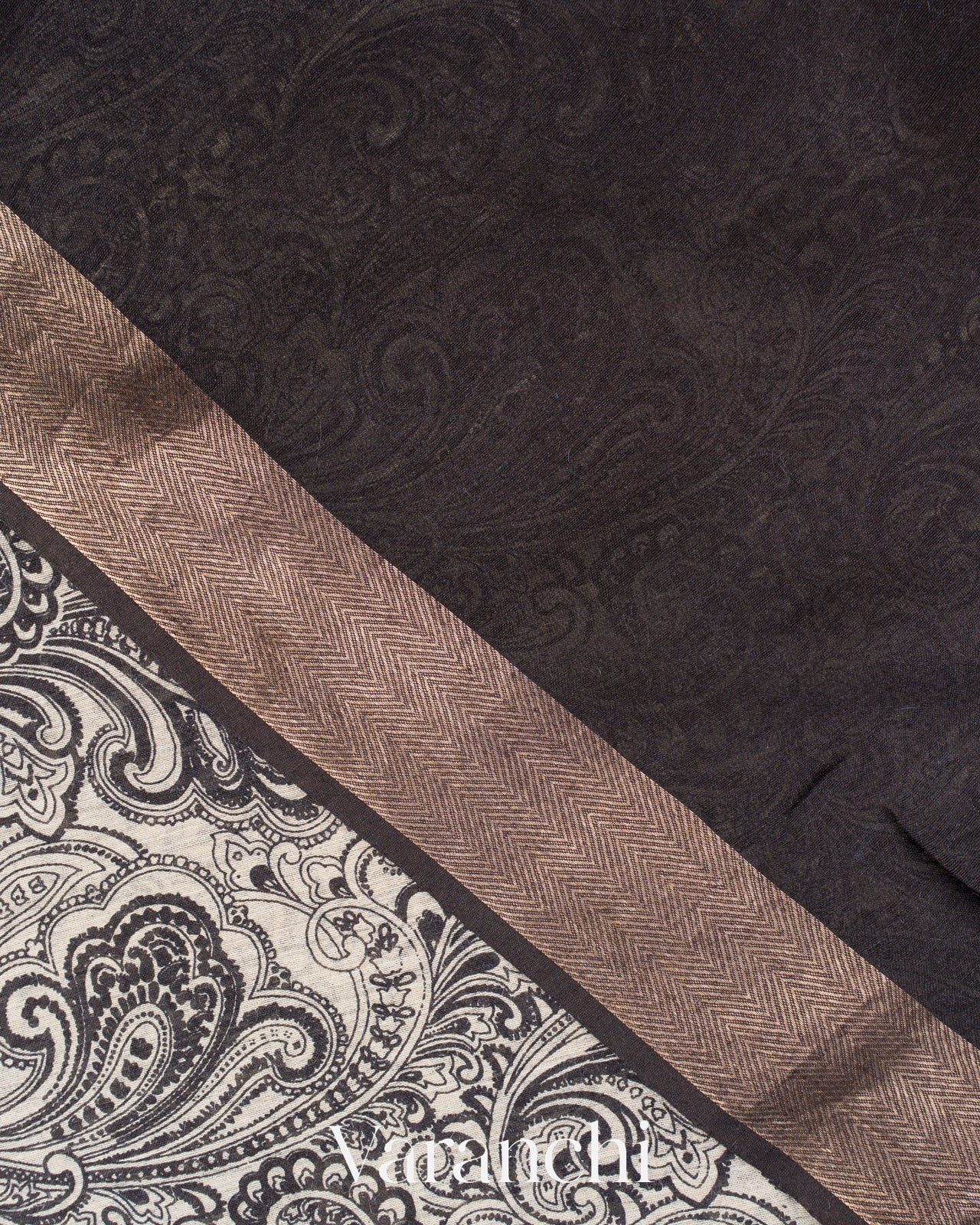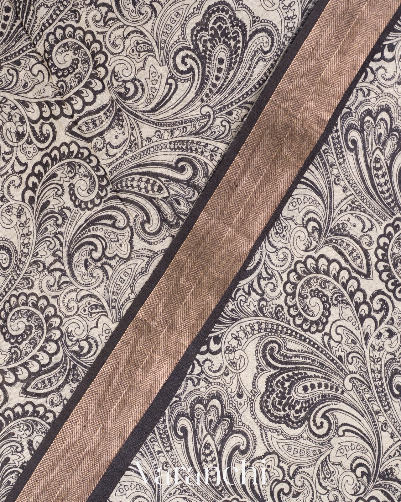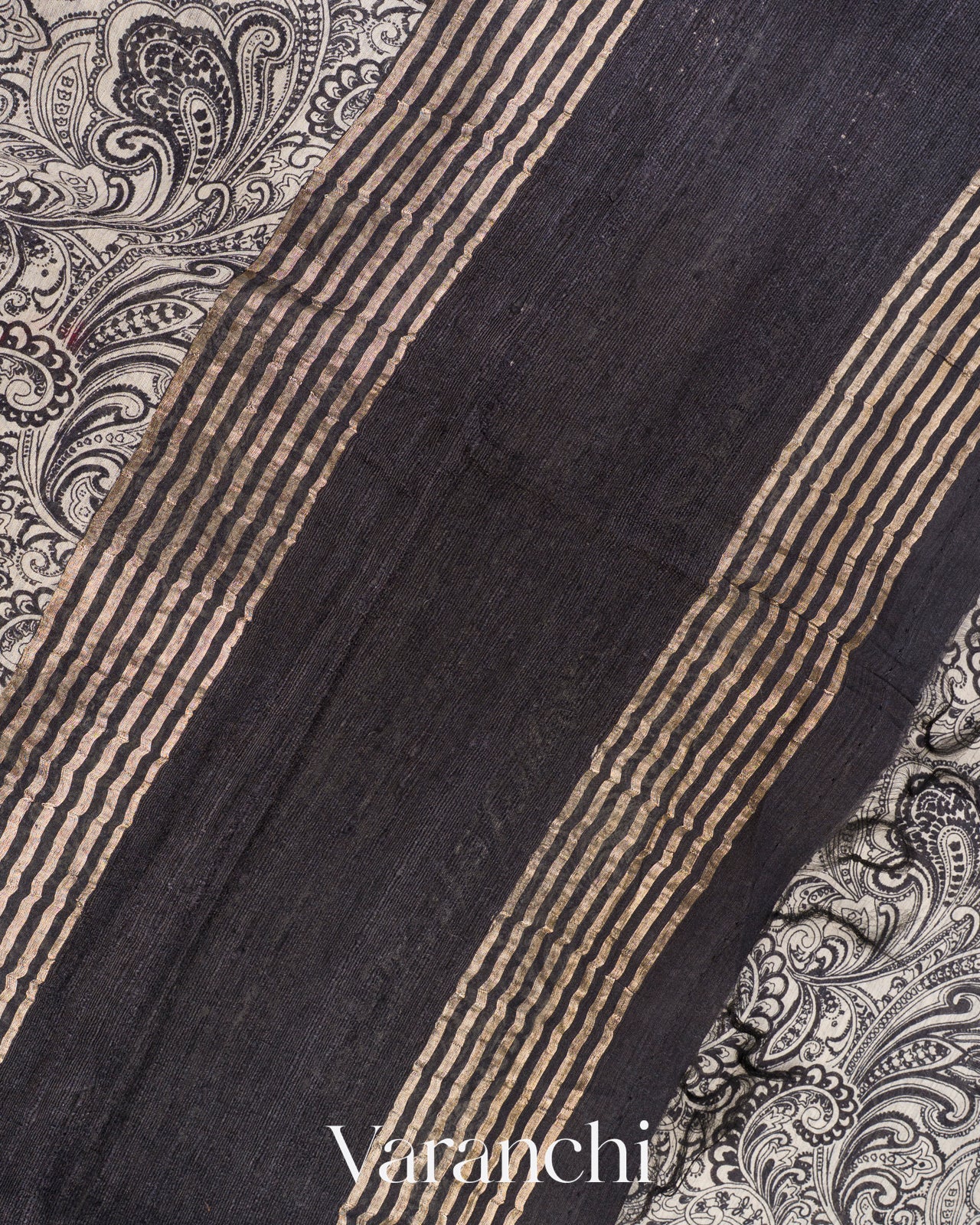 Black and White Digital Printed Pure Moonga Tussar Silk Saree