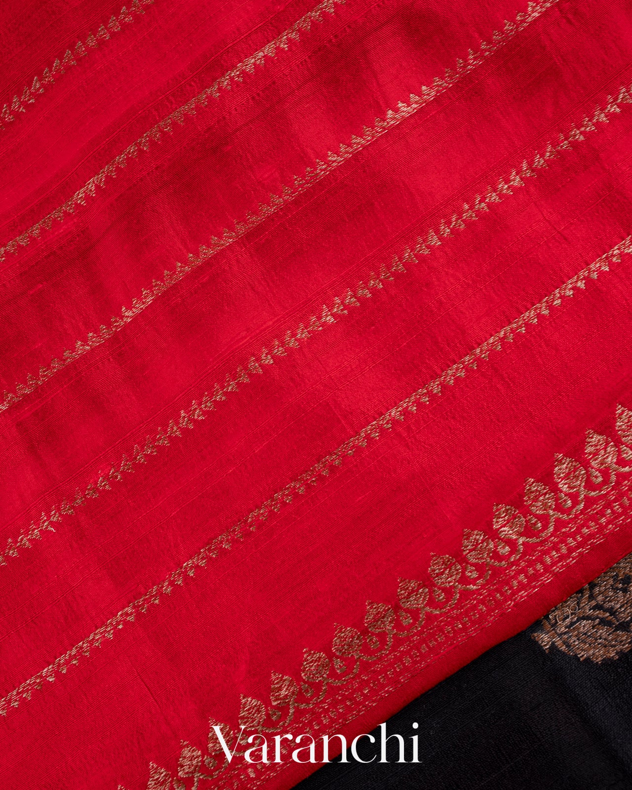 Blouse Piece Included in Red Colour with Antique Zari Striped Pattern (1 mt. approx |