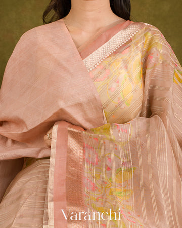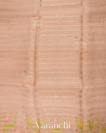 Blush Peach Pichwai Printed Pure Kora Silk Saree