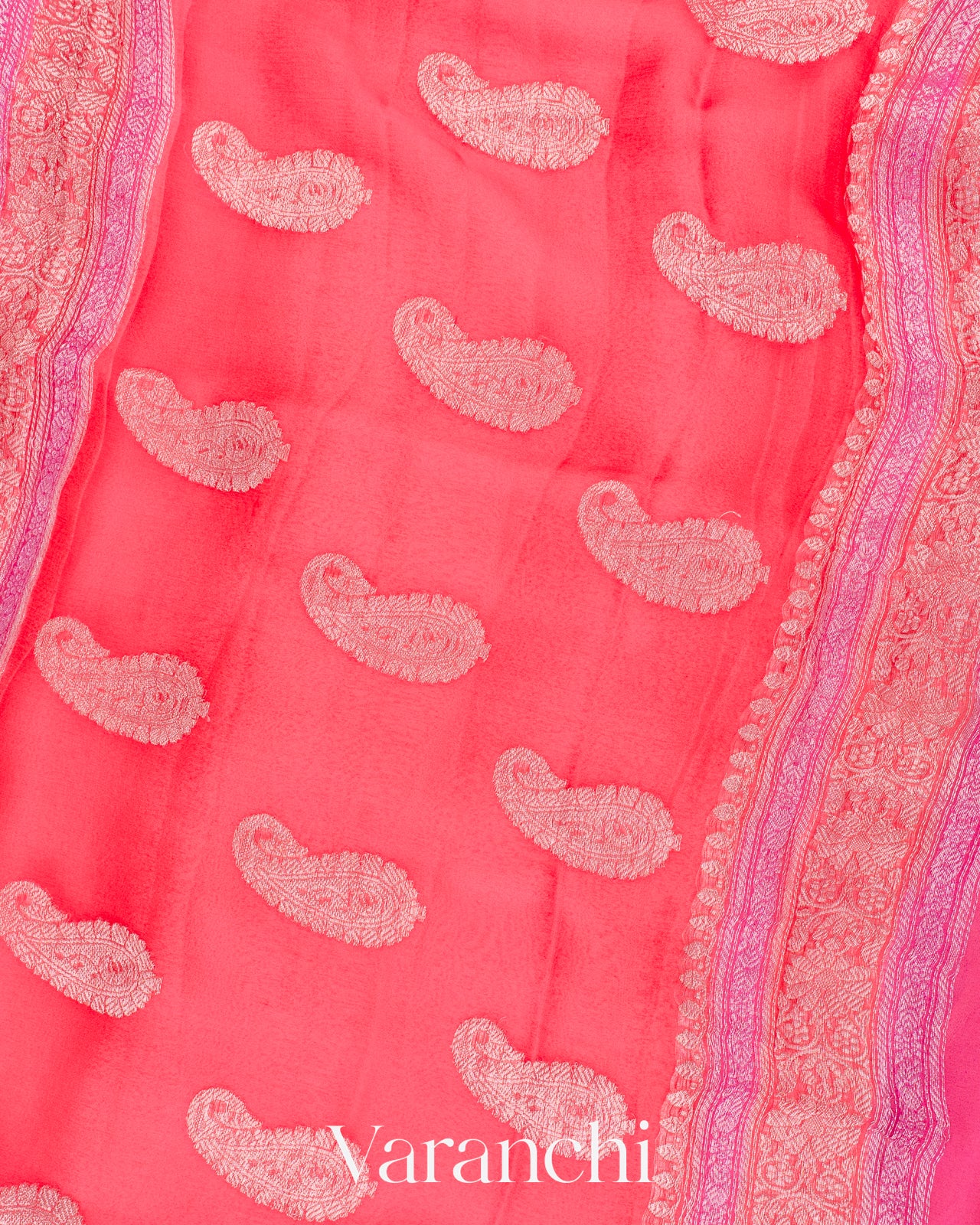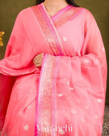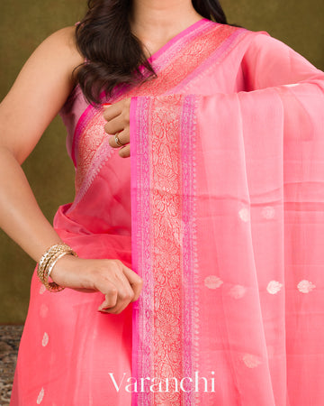 Blush Pink Pure Chiffon Silk Handloom Saree