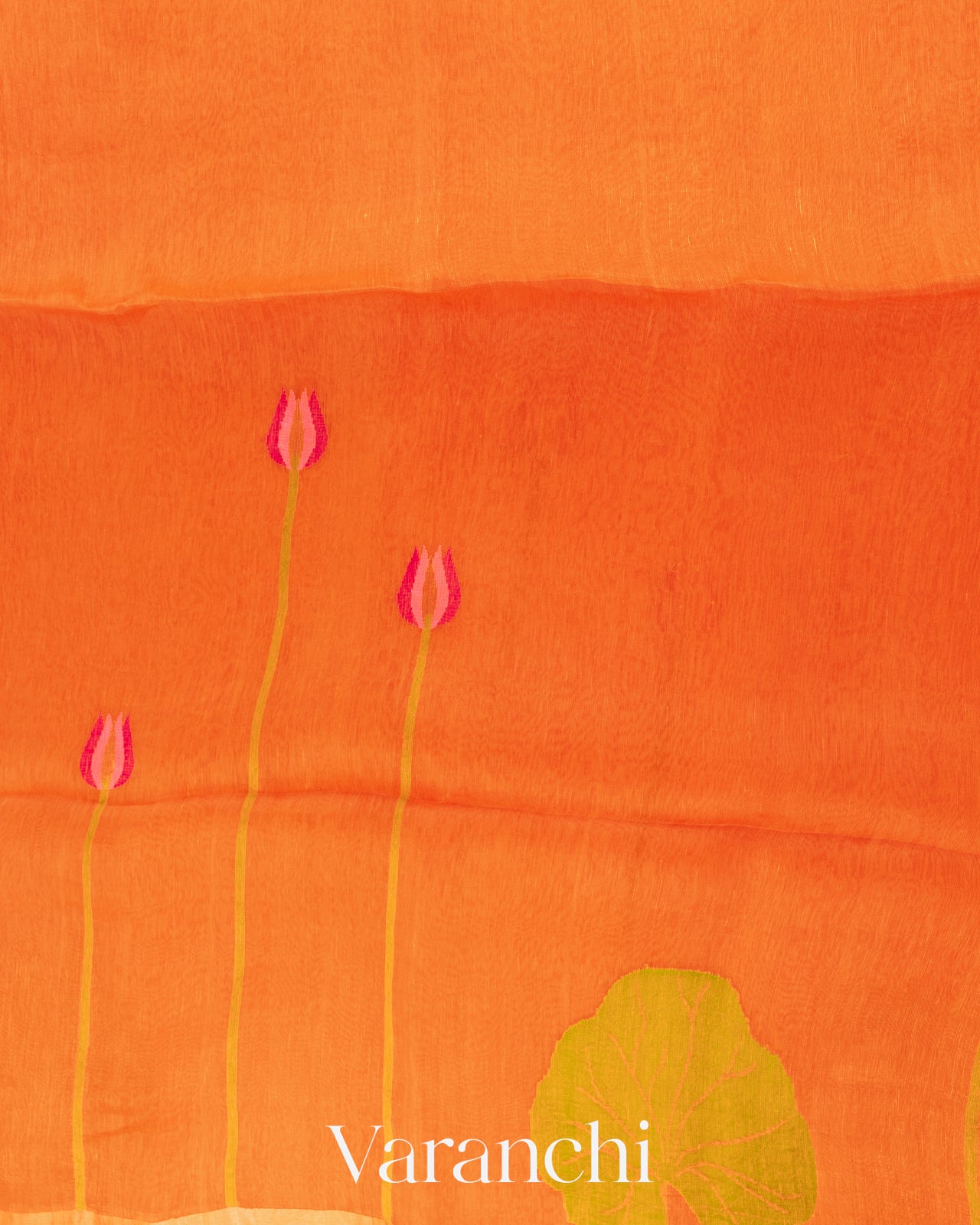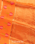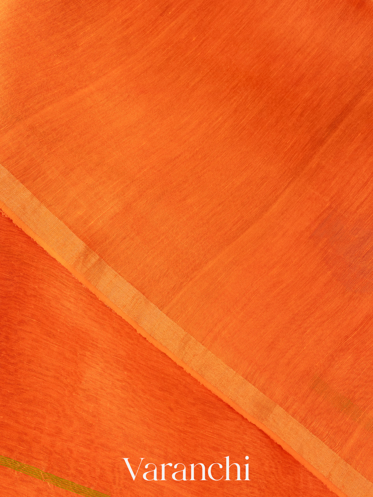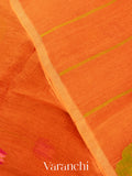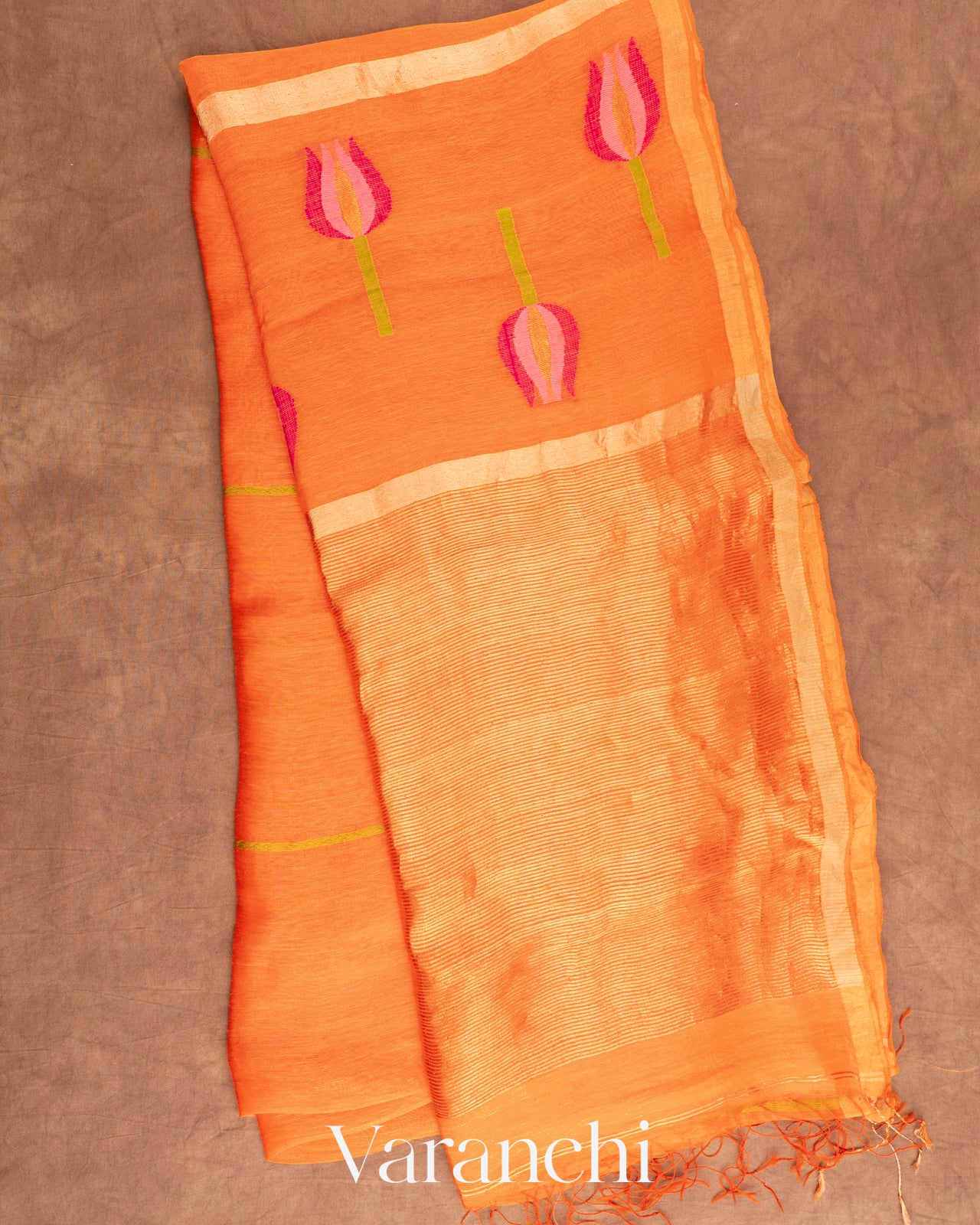 Bright Orange Jamdani Pure Silk Linen Handloom Saree