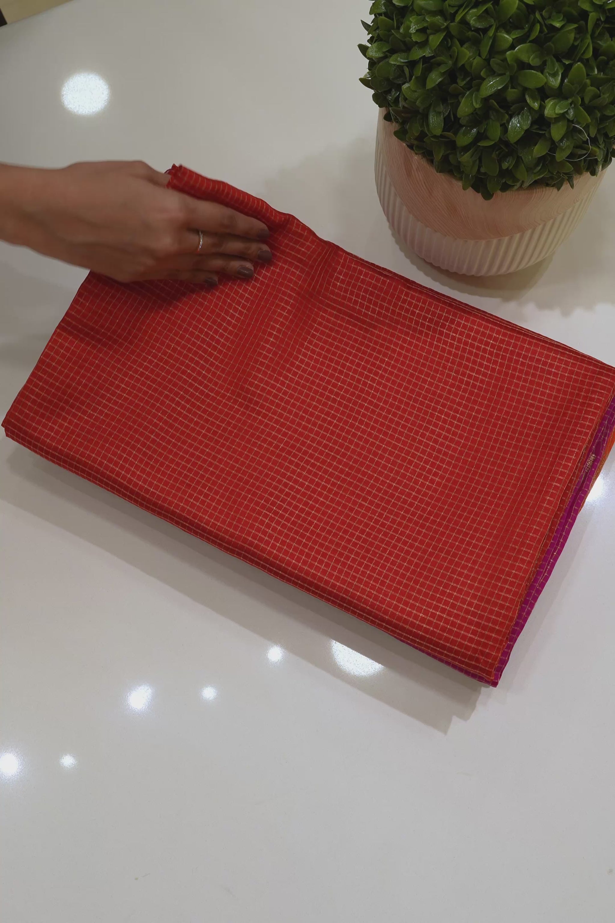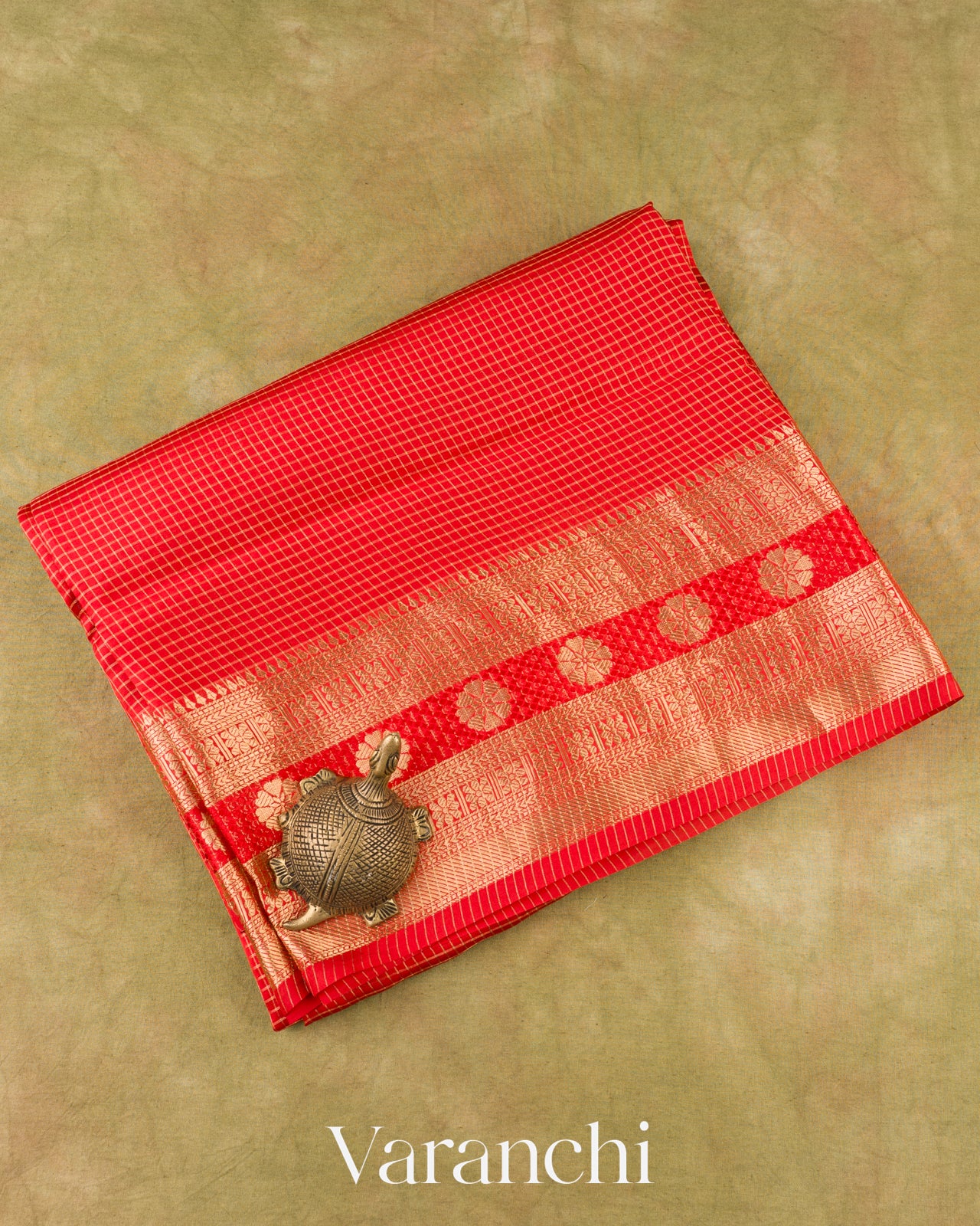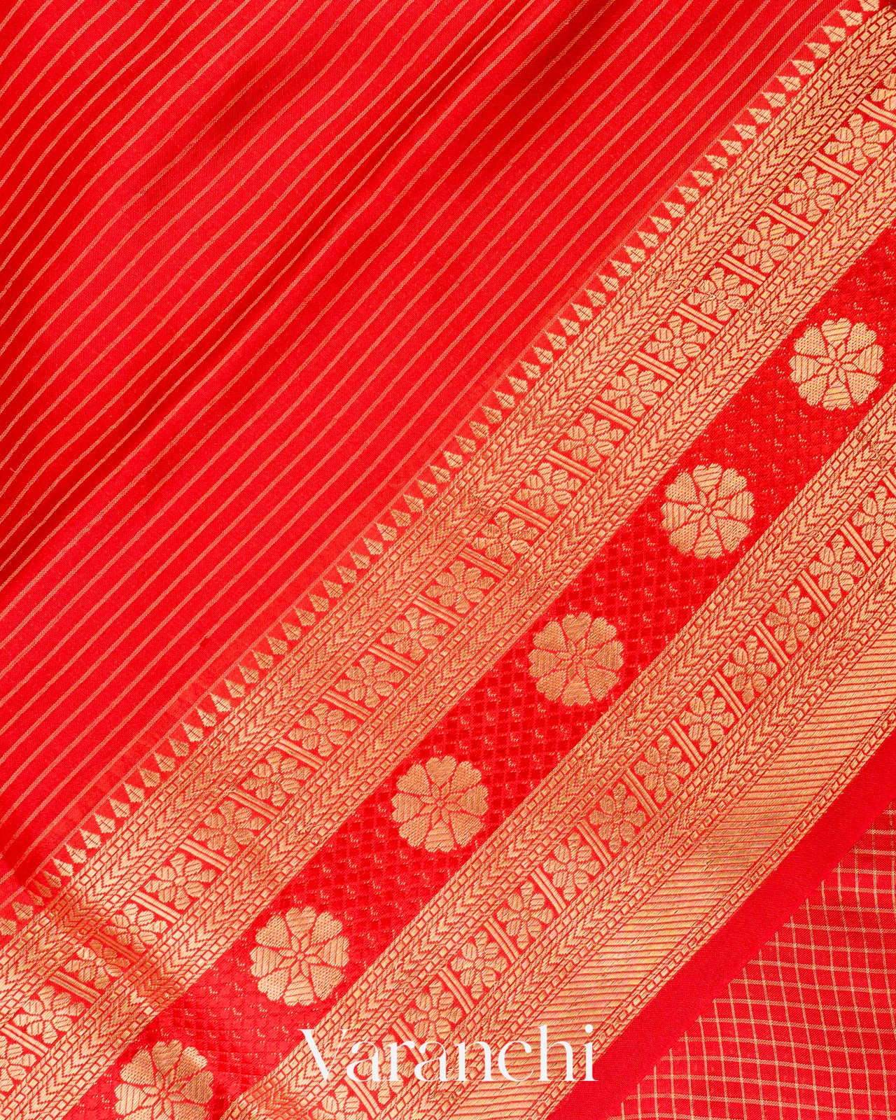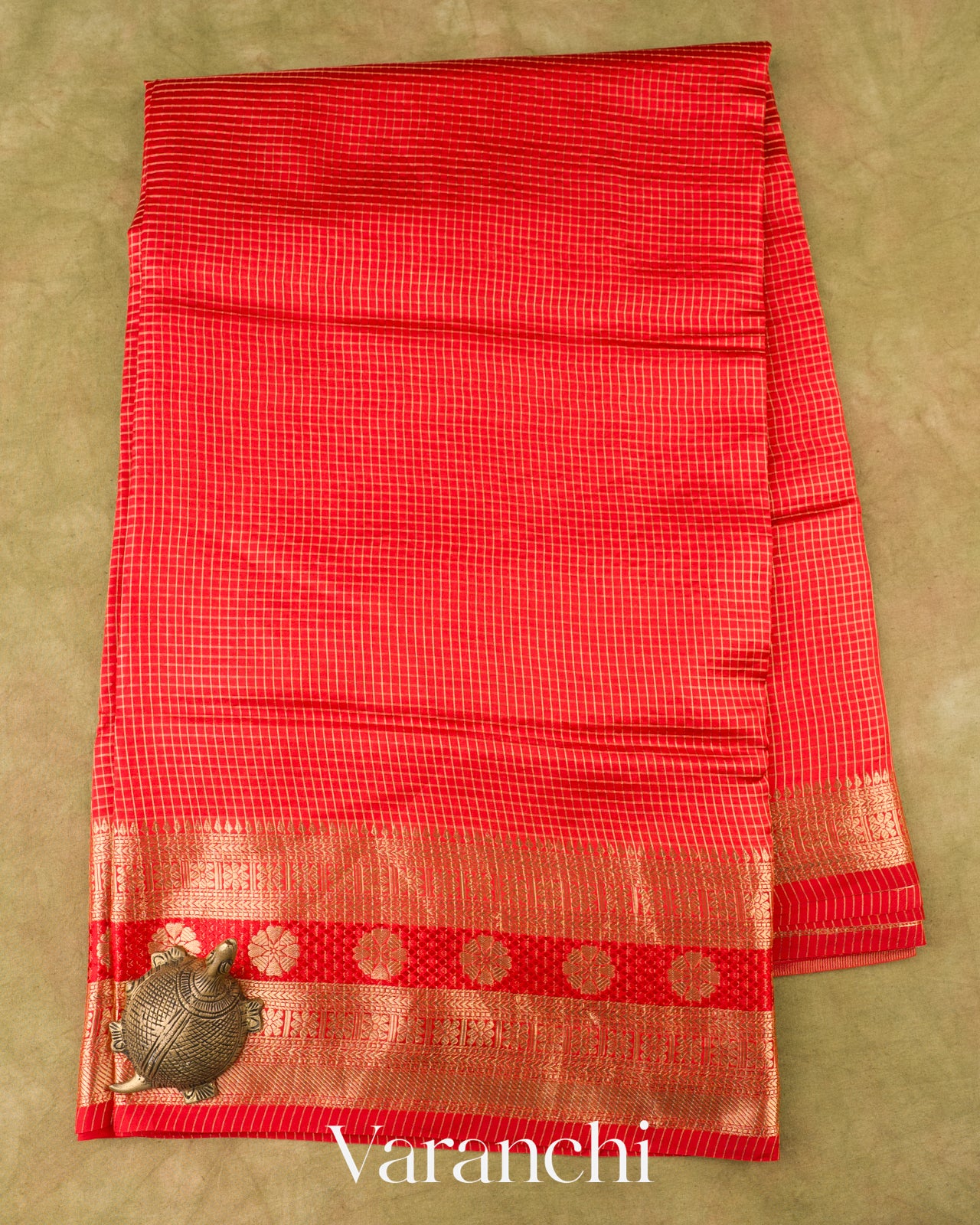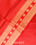 Bright Red Checks Pure Poona Silk Saree