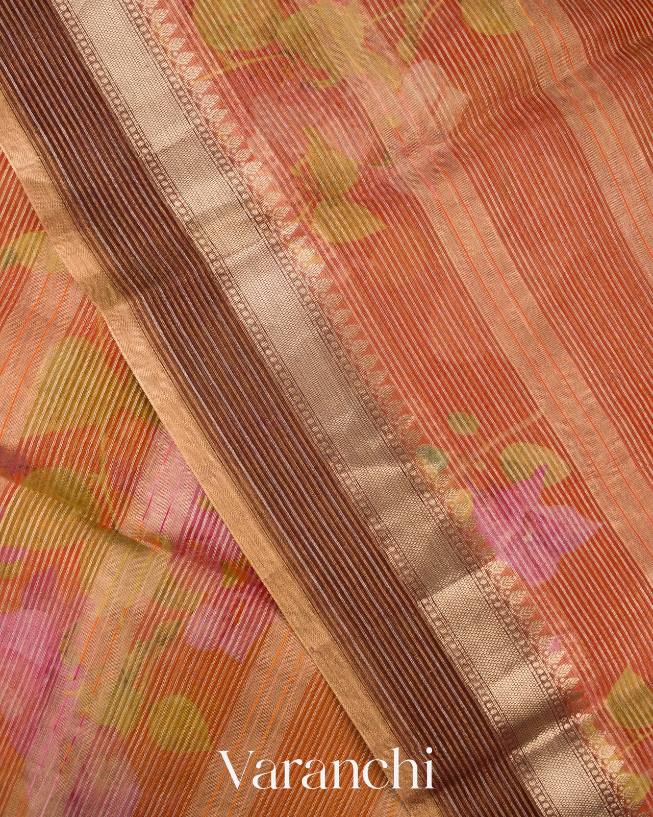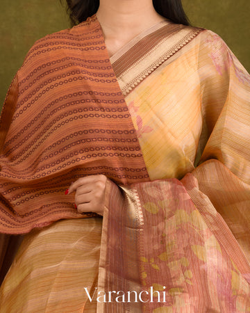 Blouse Piece Included in Rusty Red Colour with Digital Striped Pattern (1 mt. approx) |