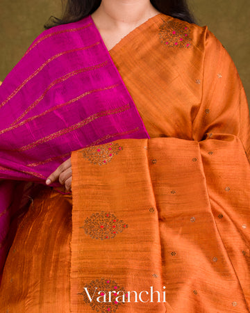 Burnt Orange Borderless Pure Raw Silk Handloom Saree