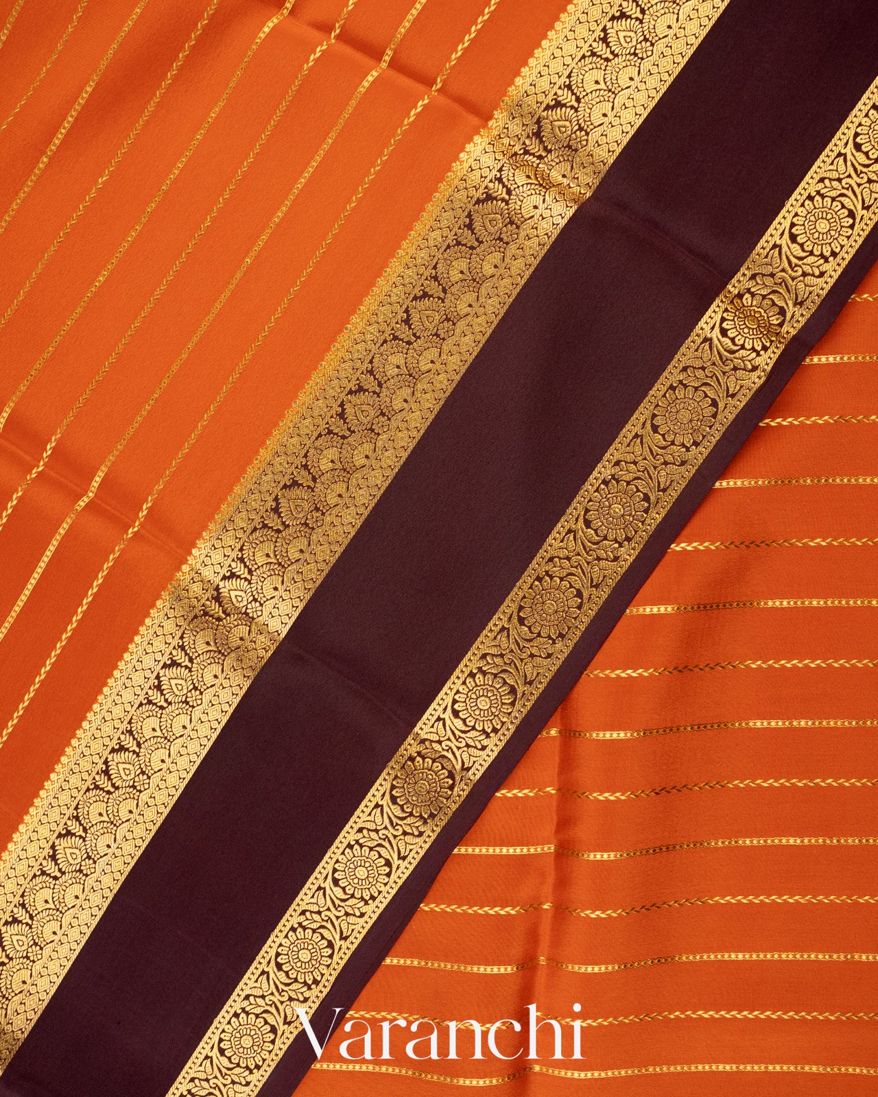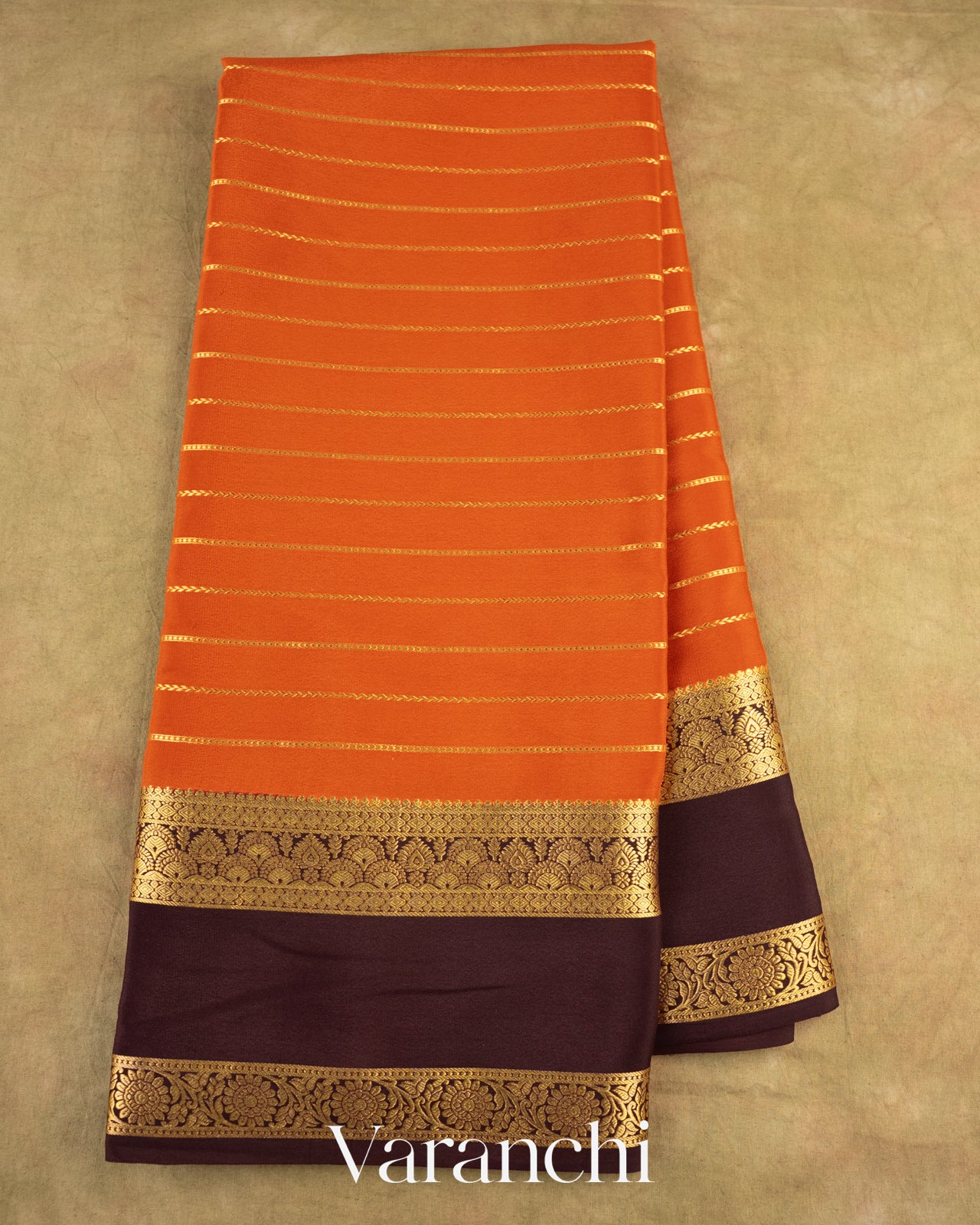Burnt Orange Pure Mysore Crepe Silk Saree