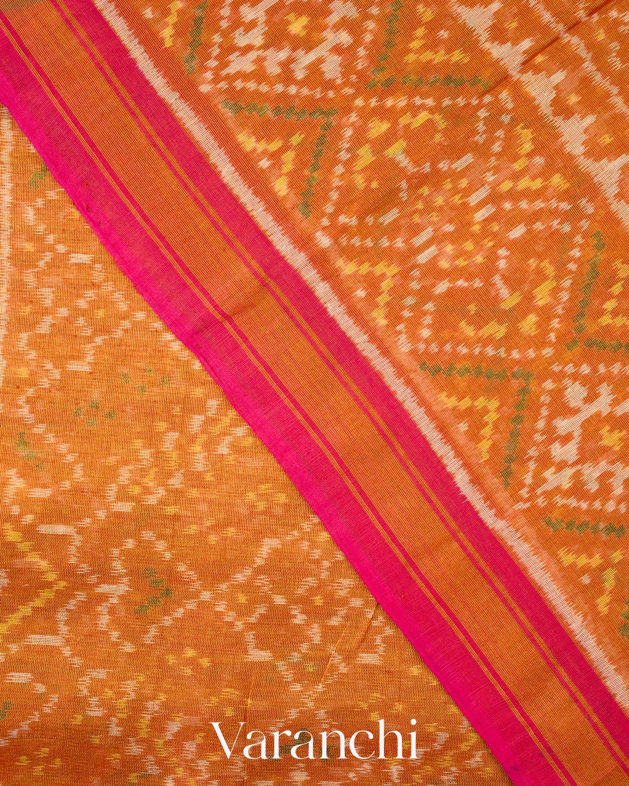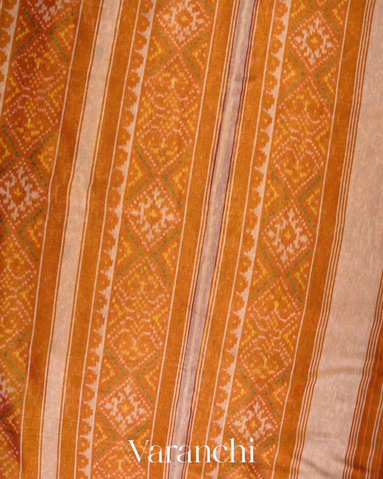 Burnt Orange Pure Rajkot Patola Cotton Tissue Handloom Saree