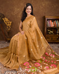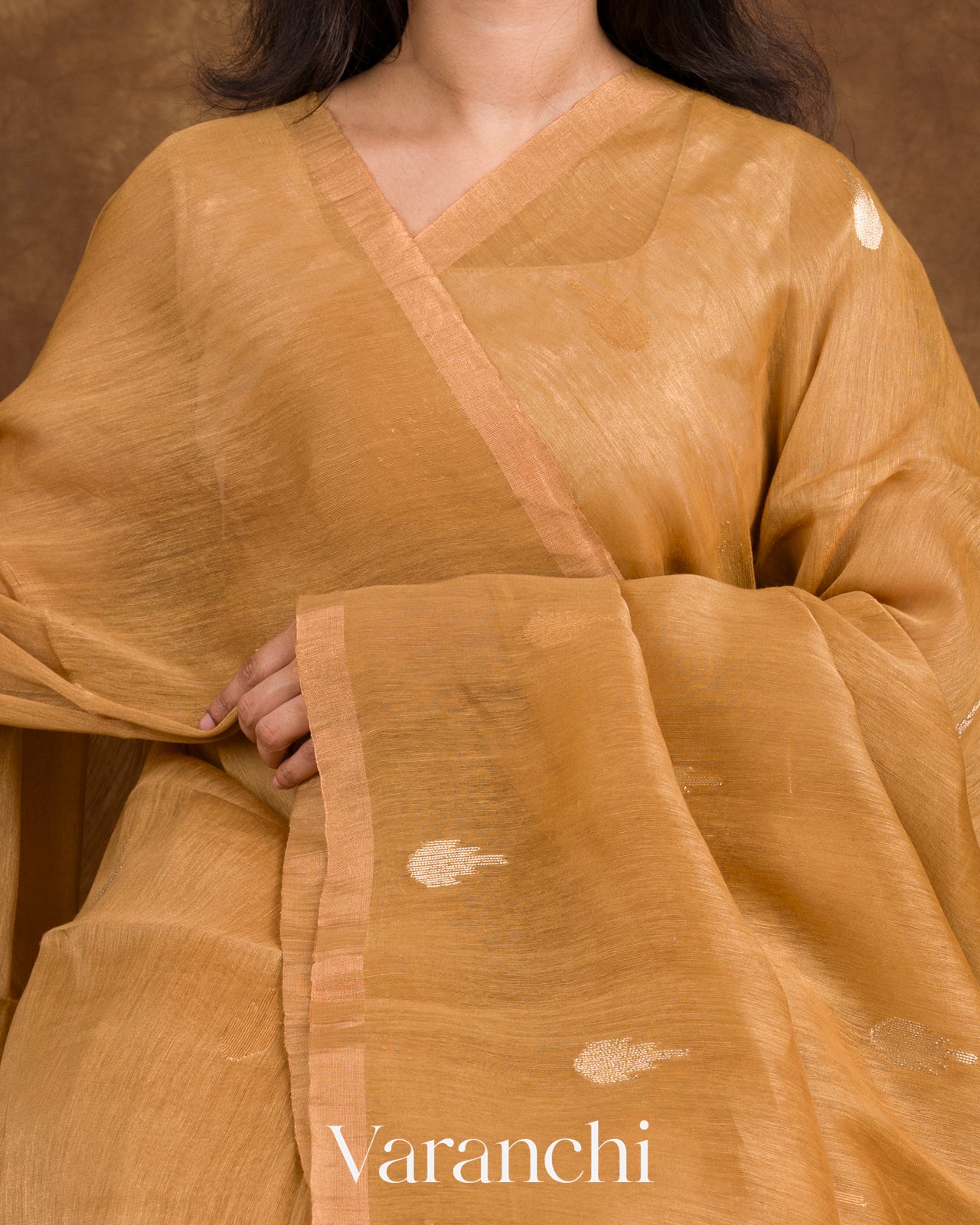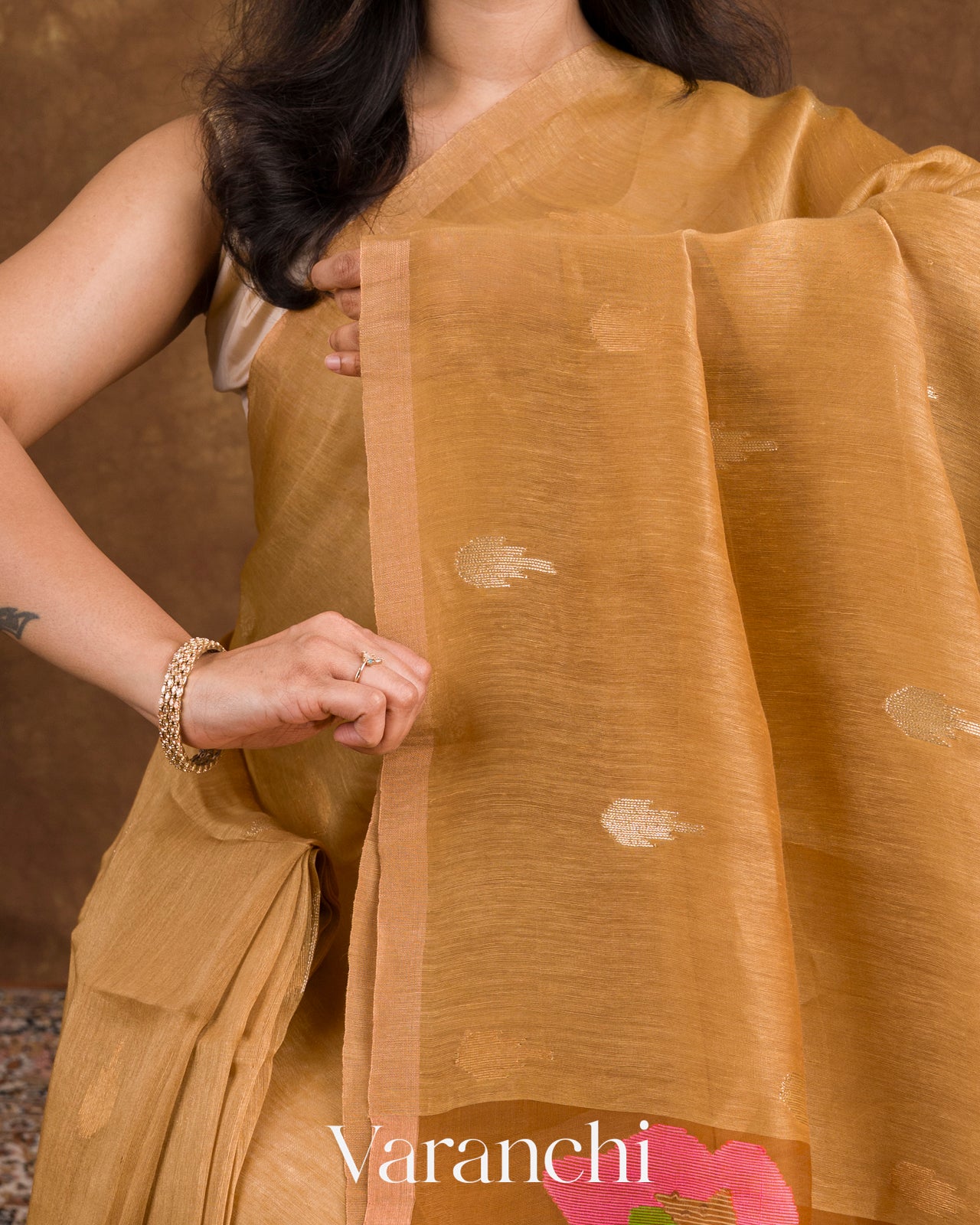 Caramel Jamdani Pure Silk Linen Handloom Saree