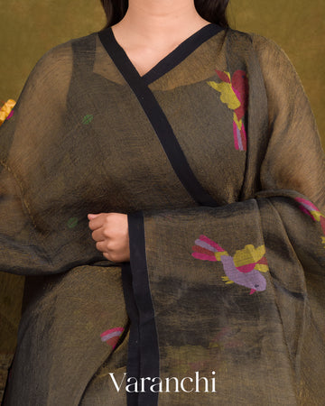Charcoal Black Jamdani Pure Silk Linen Tissue Handloom Saree
