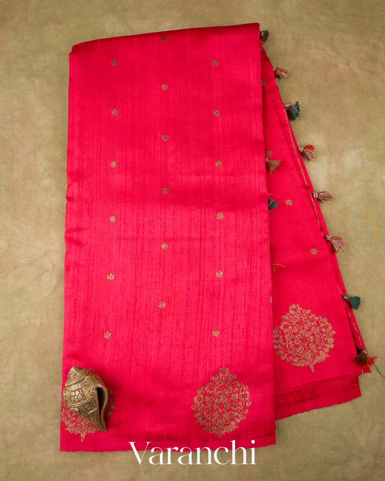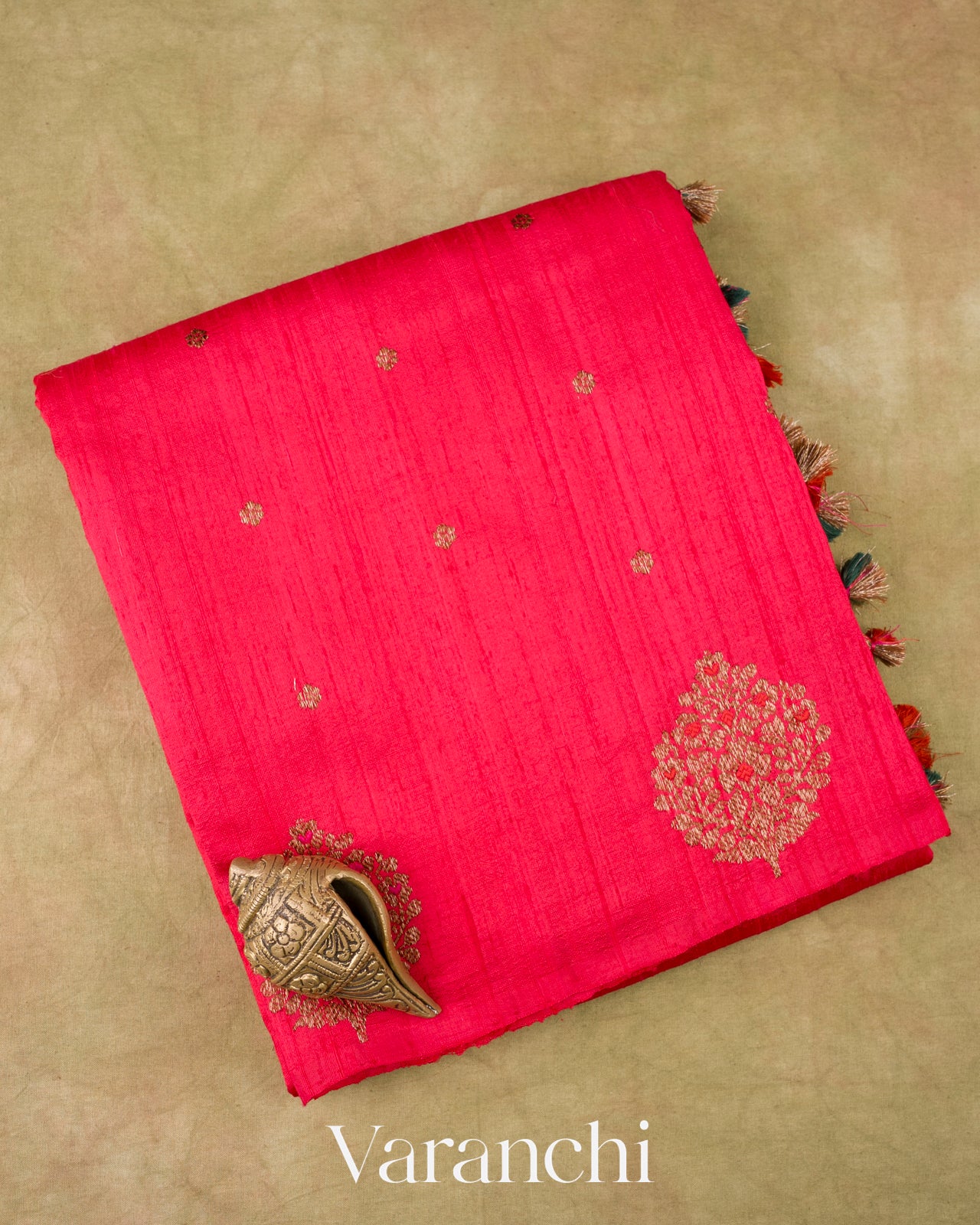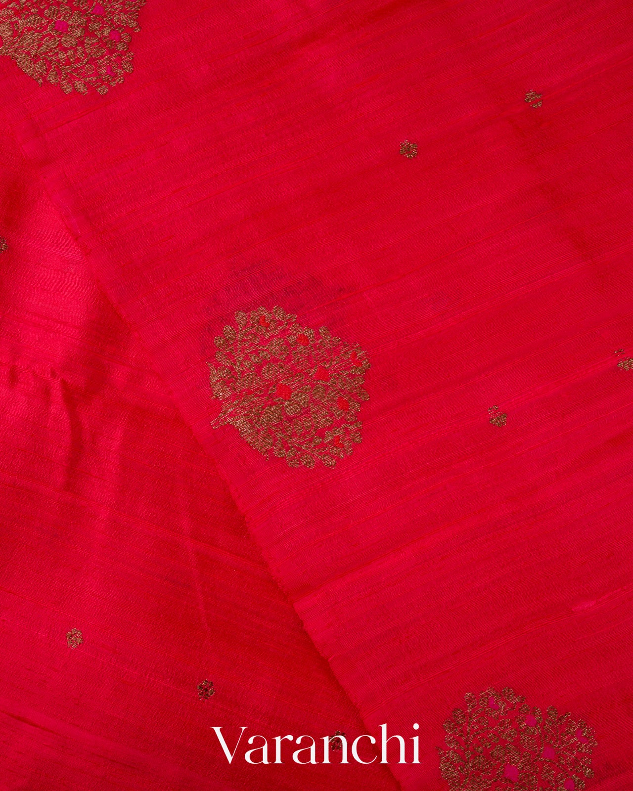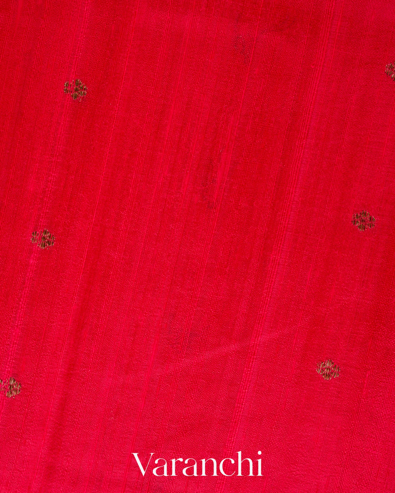 Cherry Red Borderless Pure Raw Silk Handloom Saree