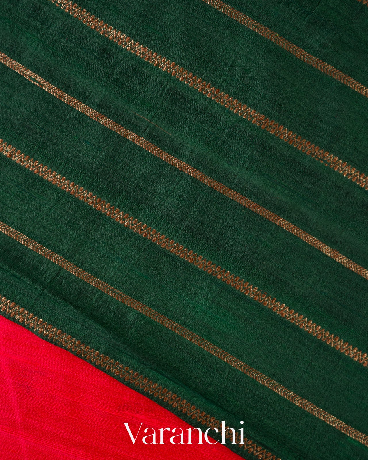 Blouse Piece Included In Bottle Green Colour with antique zari stripes (1 mt. approx) |