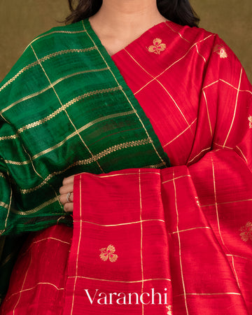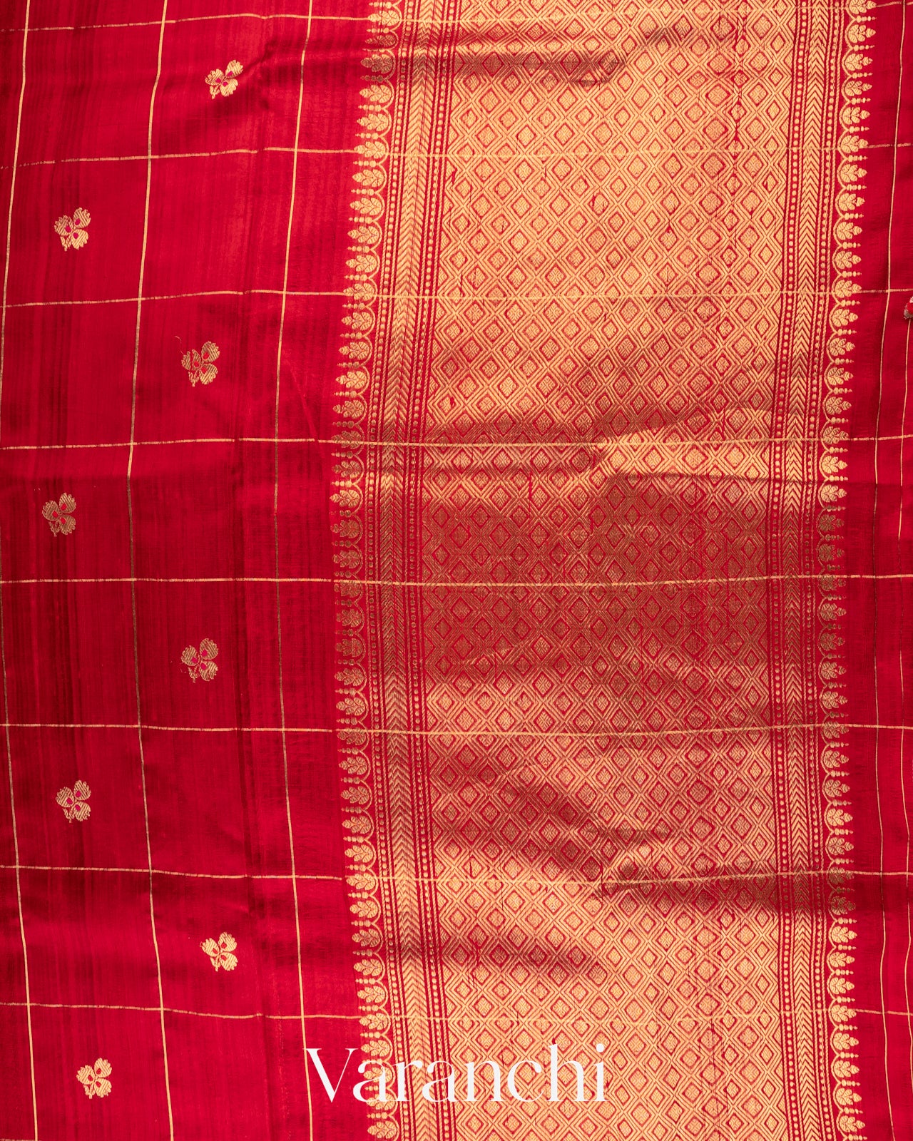 Chilli Red Checks Pure Raw Silk Handloom Saree