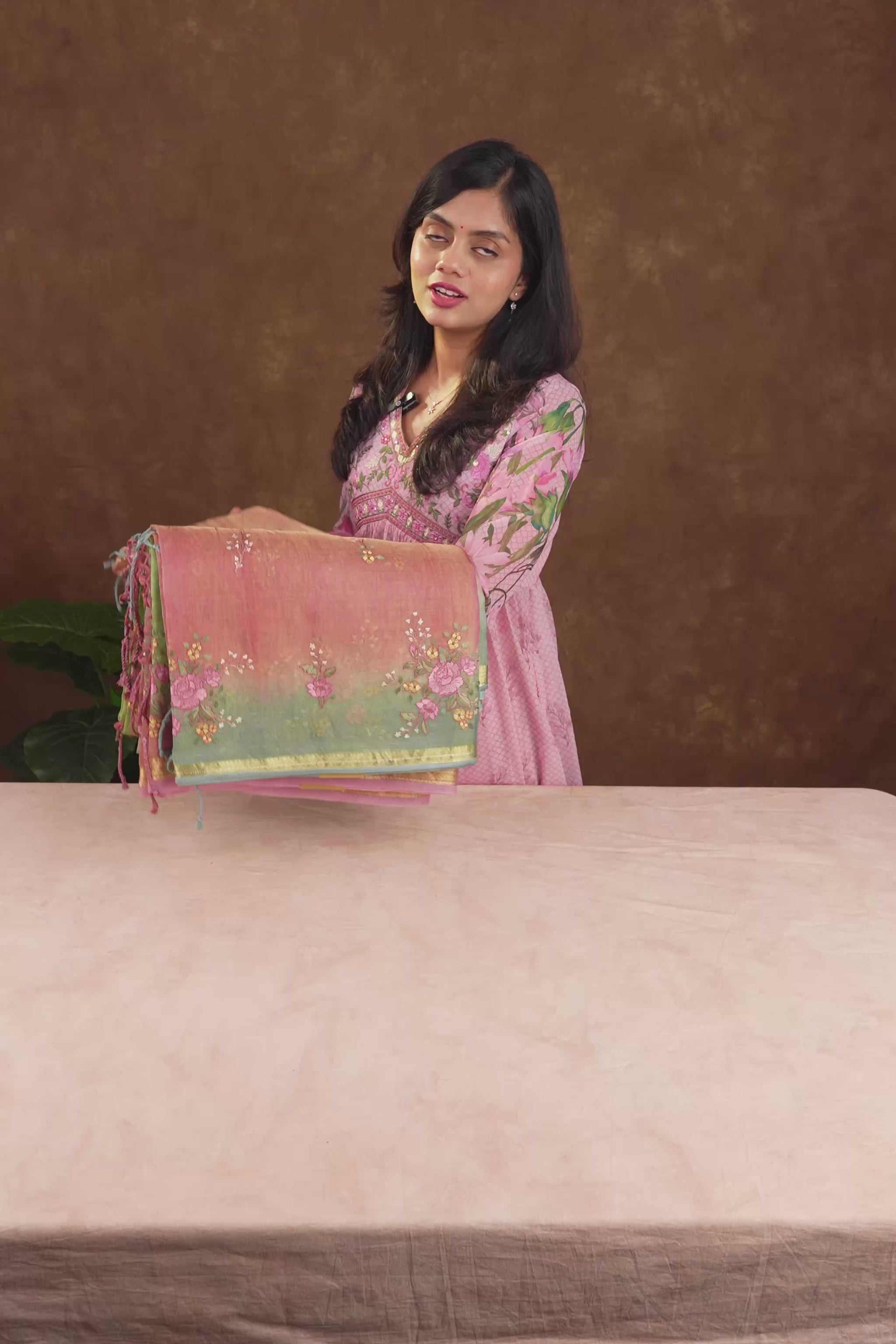 Clay Floral Embroidered Ombre-Dyed Pure Tissue Kora Silk Saree