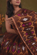 Coffee Brown Dhakai Jamdani Pure Muslin Silk Handloom Saree