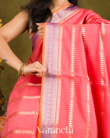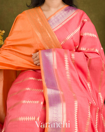 Coral Pink Pure Chiniya Silk Handloom Saree