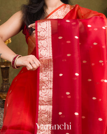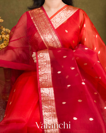 Crimson and Bright Red Ombre-Dyed Pure Kora Silk Handloom Saree