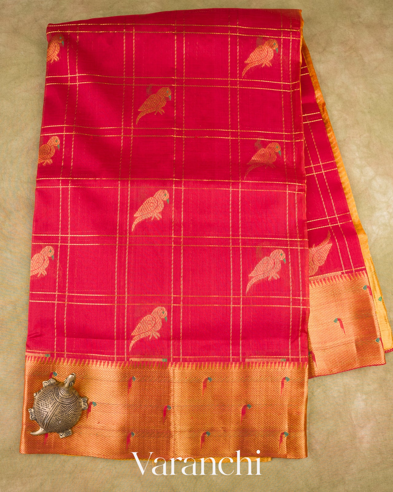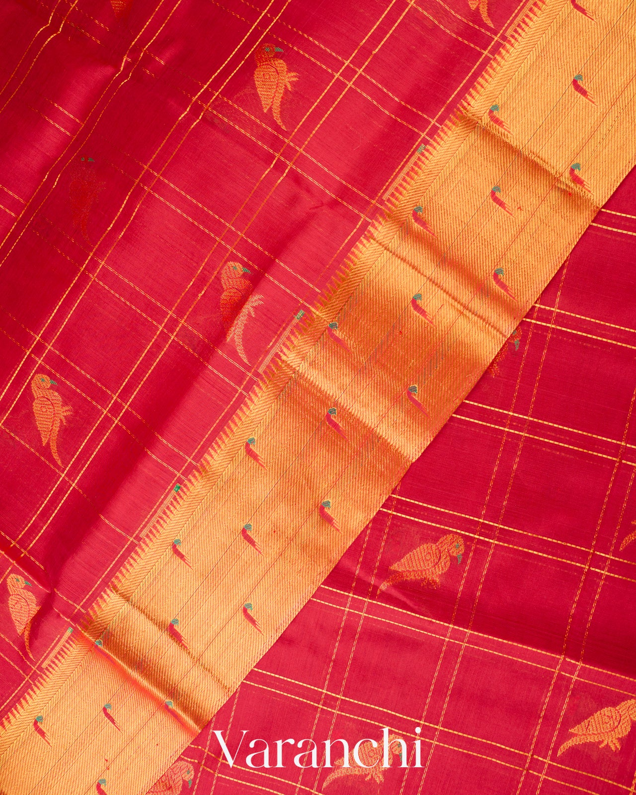 Crimson Red Pure Kanchipuram Silk Cotton Handloom Saree