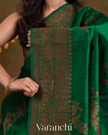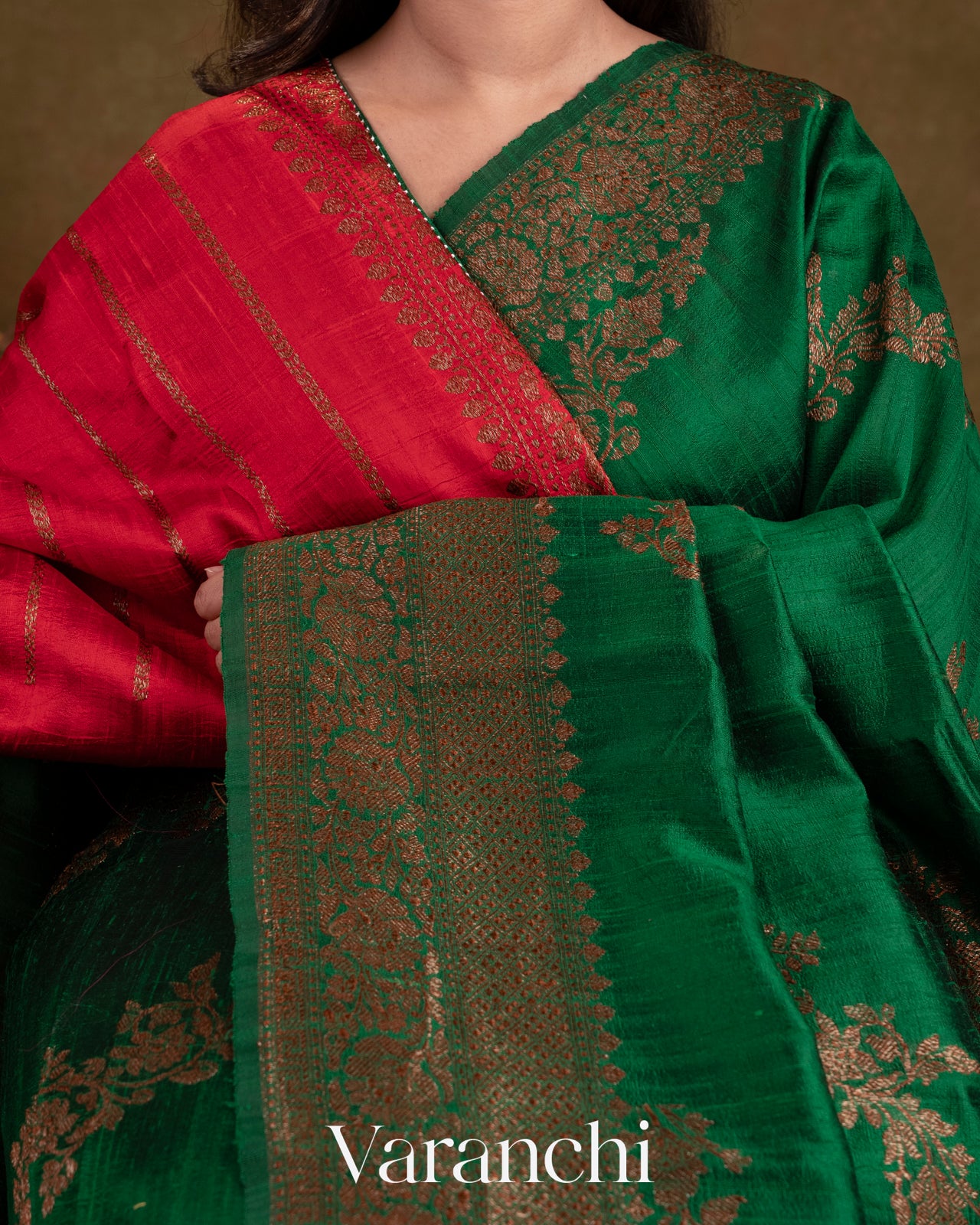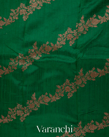 Dark Green Lehariya Pure Raw Silk Handloom Saree