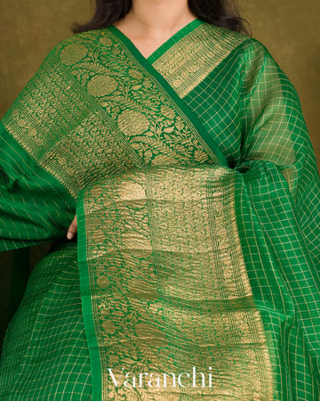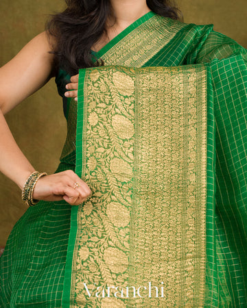 Dark Green Pure Crush Tissue Kora Silk Saree