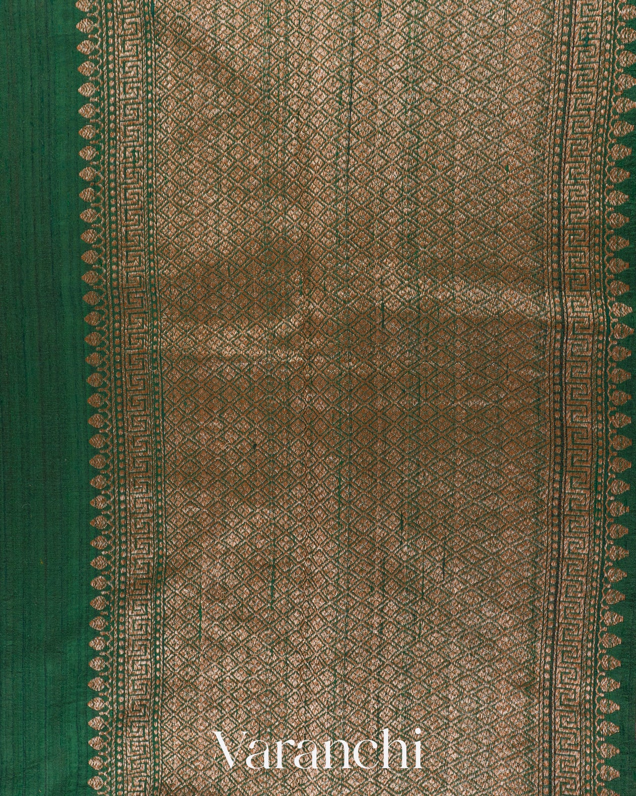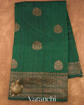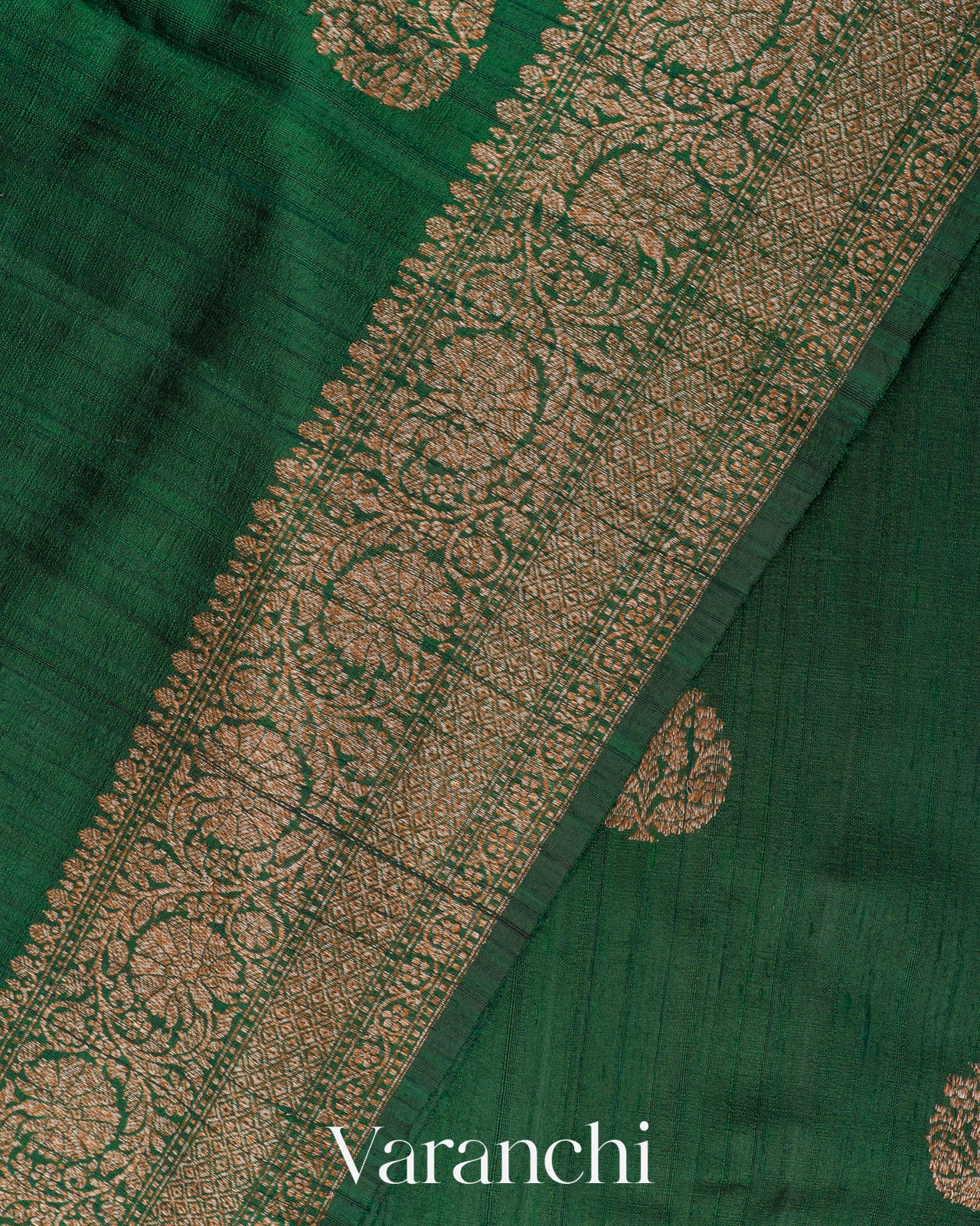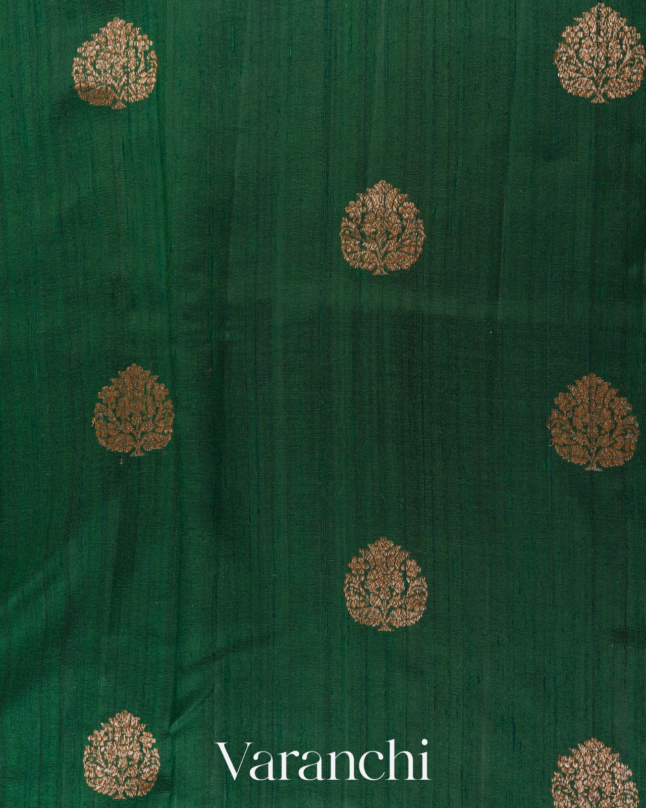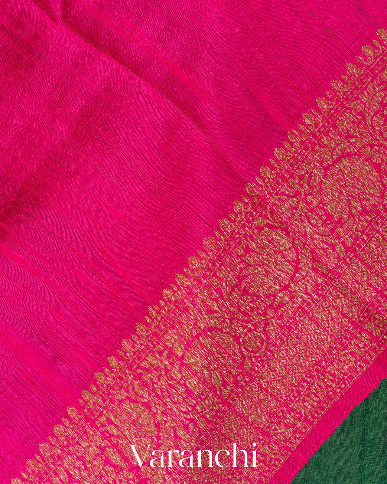 Dark Green and Rani Pink Pure Raw Silk Handloom Saree