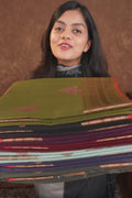 Dark Mehendi Pure Chanderi Silk Cotton Handloom Saree