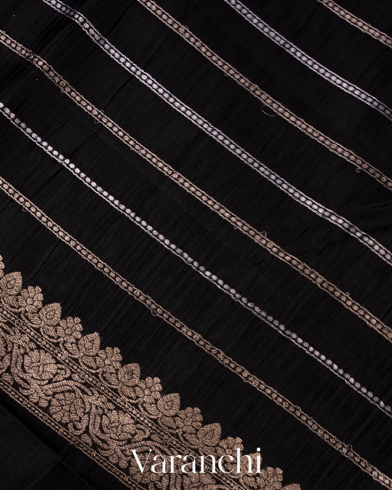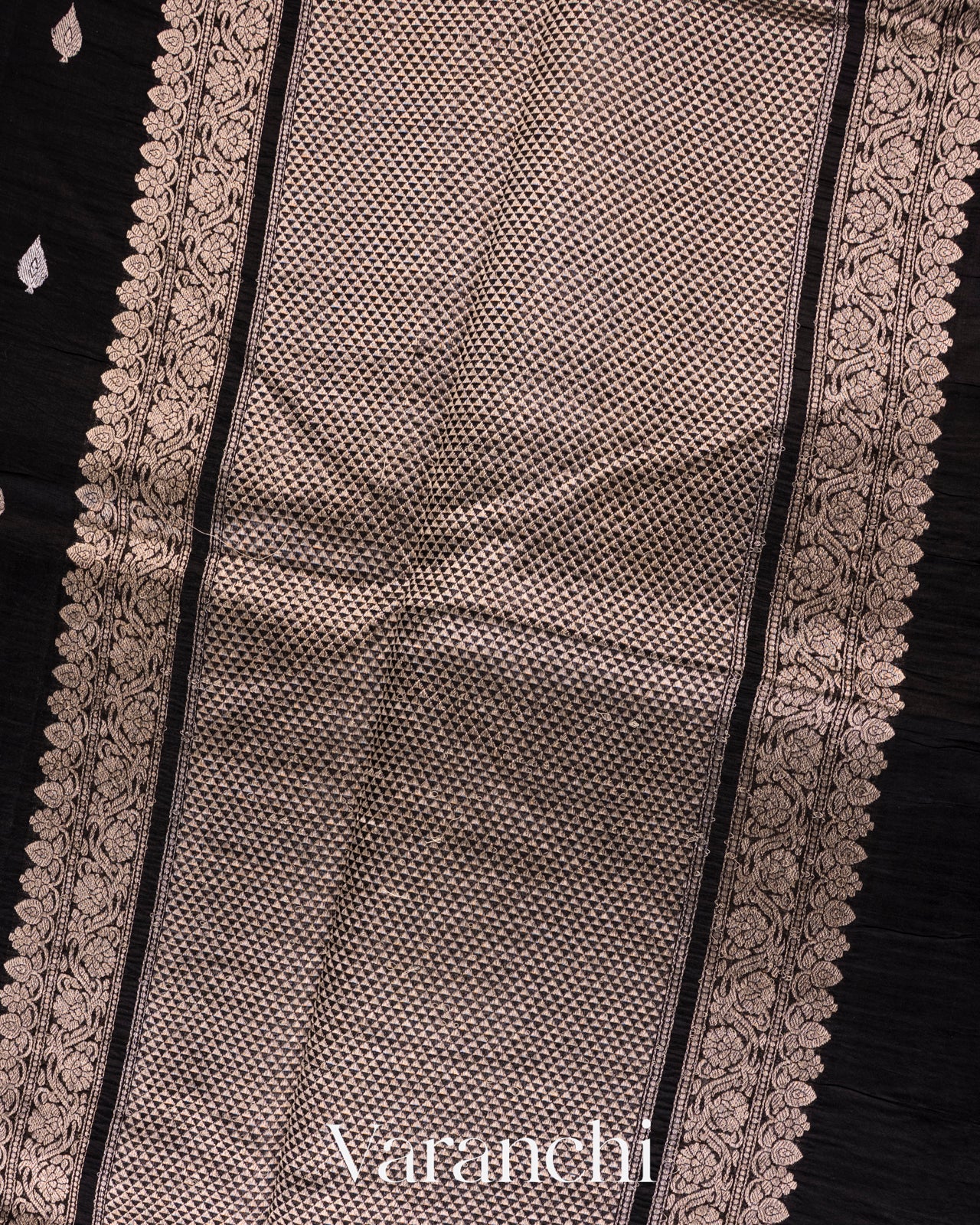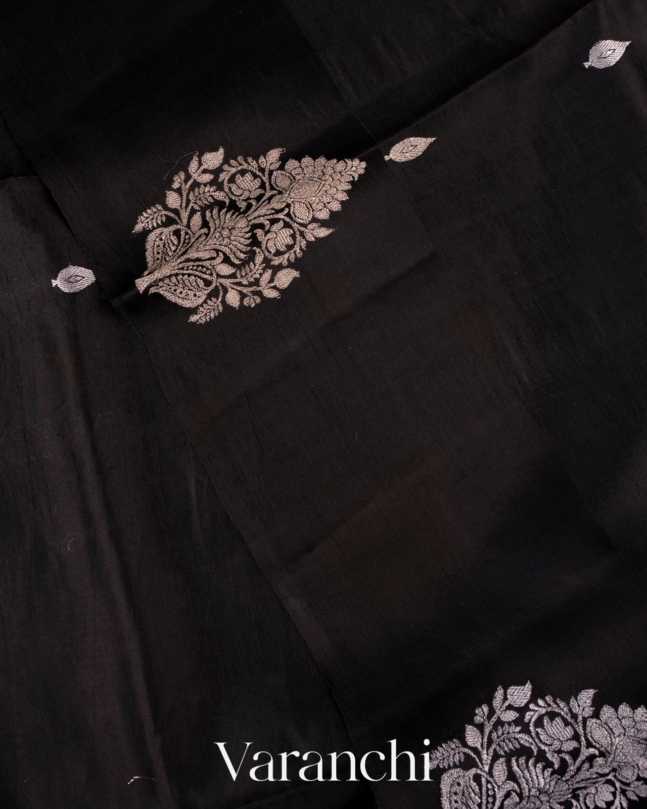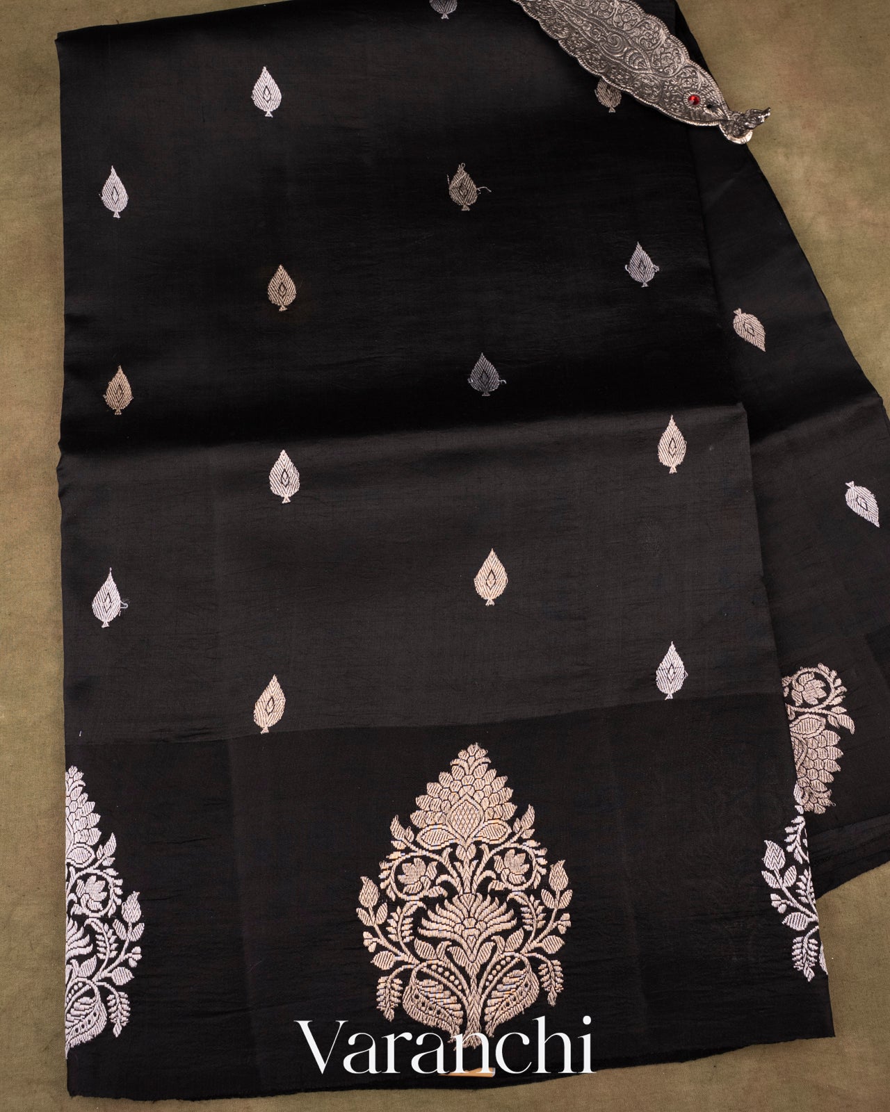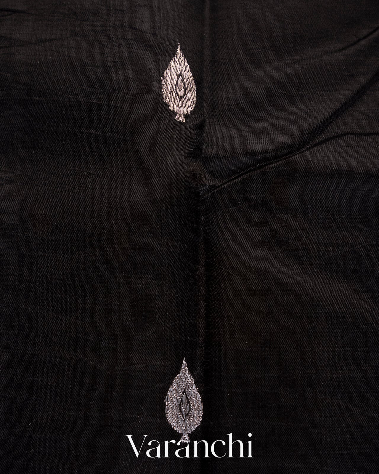 Deep Black Pure Raw Mango Silk Handloom Saree