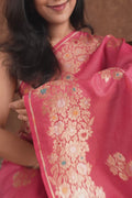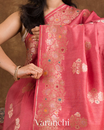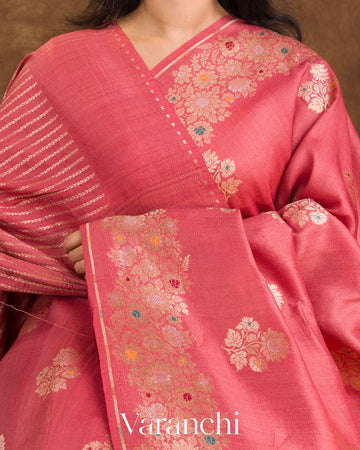 Deep Blush Pink Pure Tussar Georgette Silk Handloom Saree