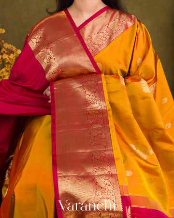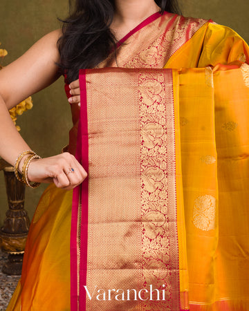 Deep Turmeric Yellow Pure Kanchipuram Silk Handloom Saree