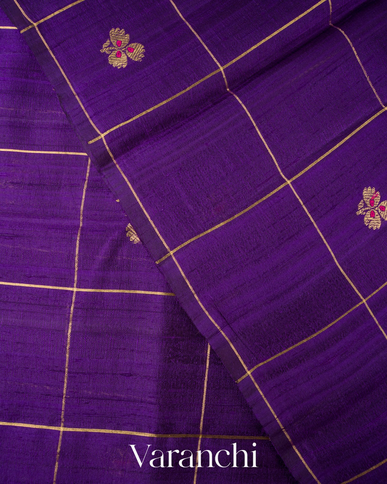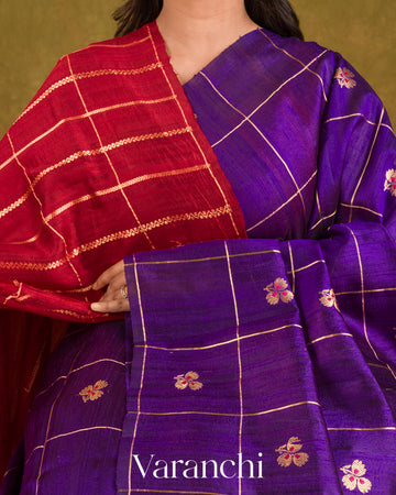 Deep Violet Checks Pure Raw Silk Handloom Saree