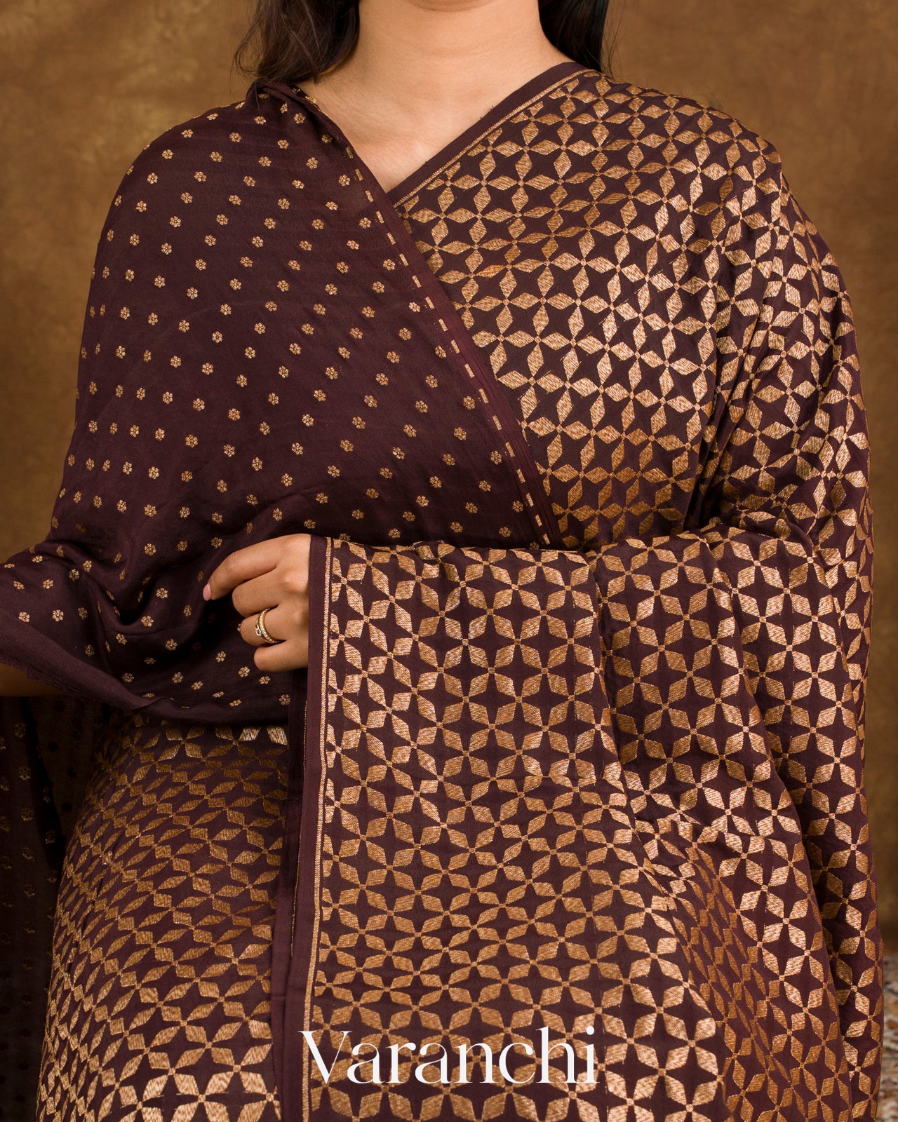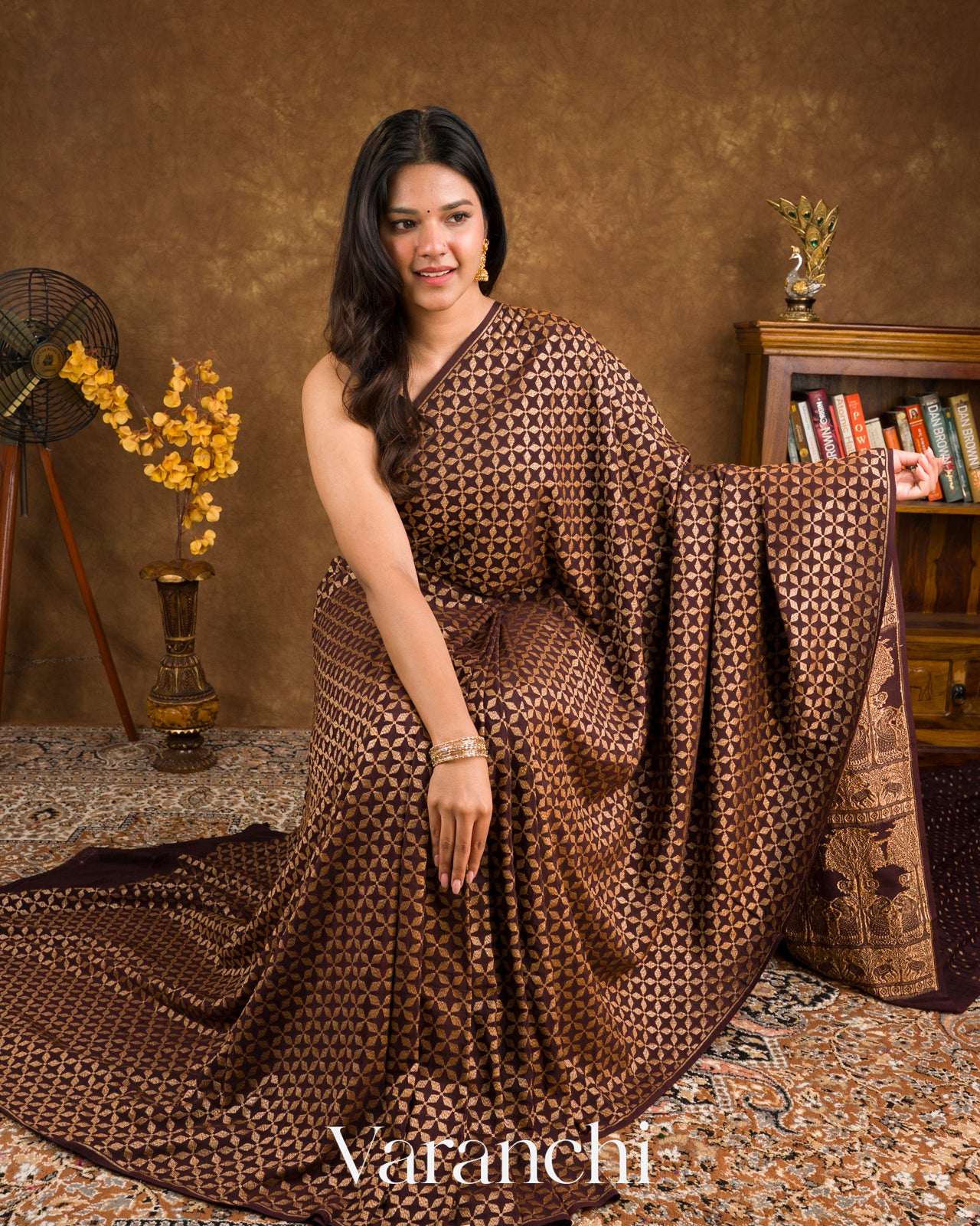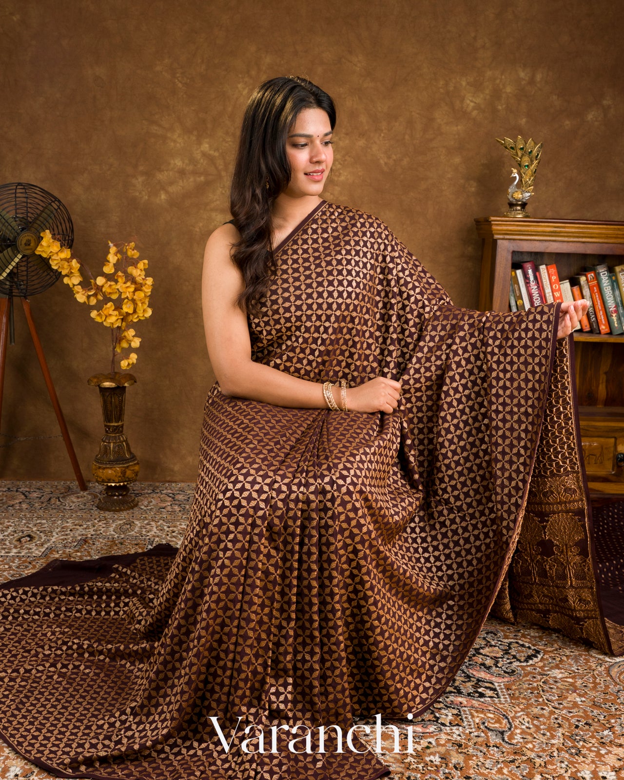 Deep Wine Heavy Brocade Pure Crepe Silk Saree