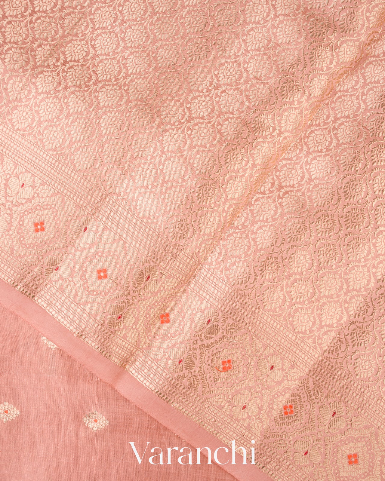 Dusty Peach Pure Dupion Silk Saree