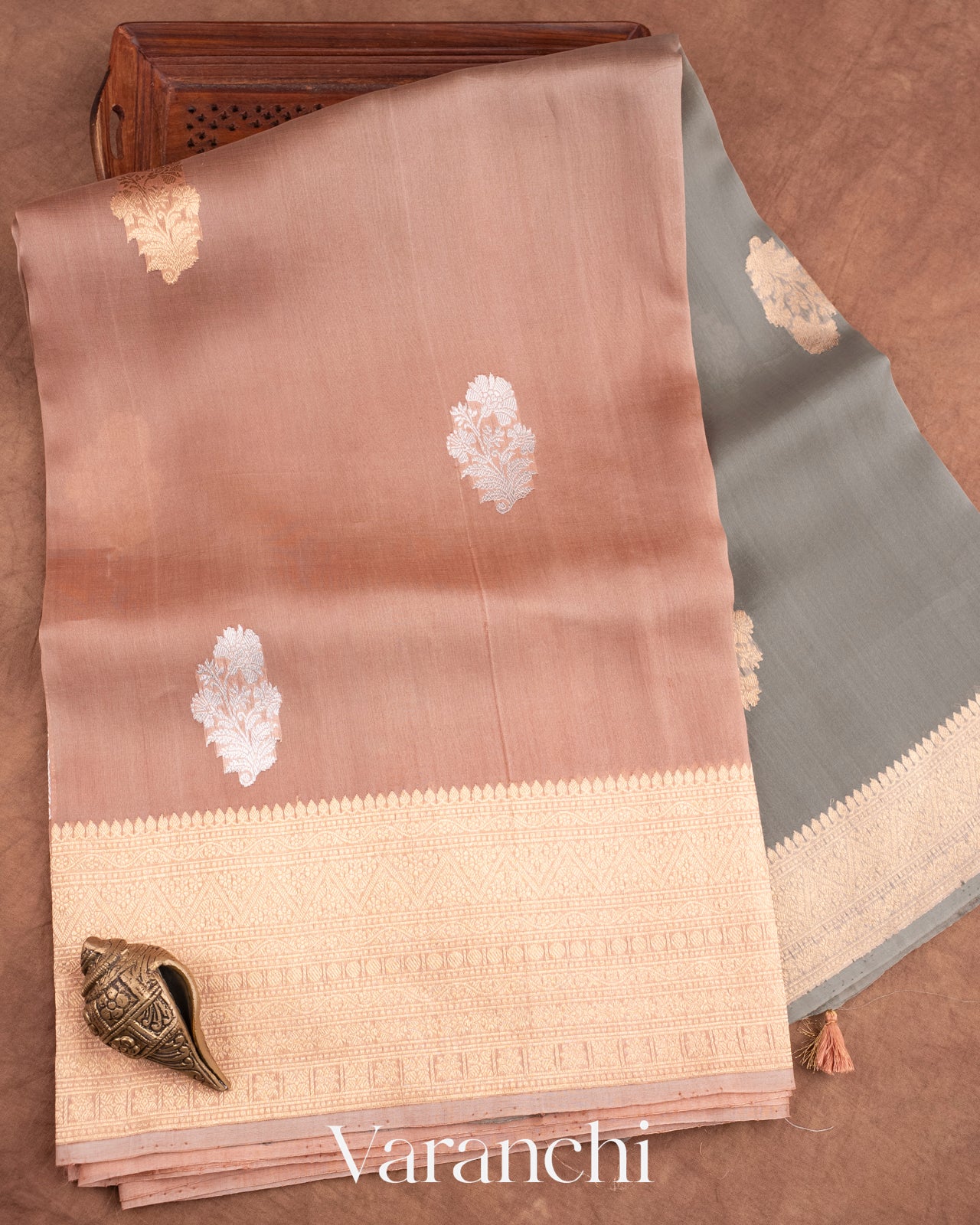 Dusty Peach Pure Kora Silk Ombre-Dyed Handloom Saree