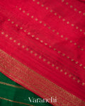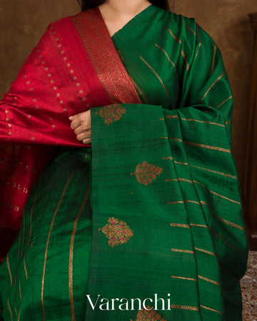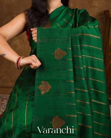Emerald Green Borderless Striped Pure Raw Silk Handloom Saree