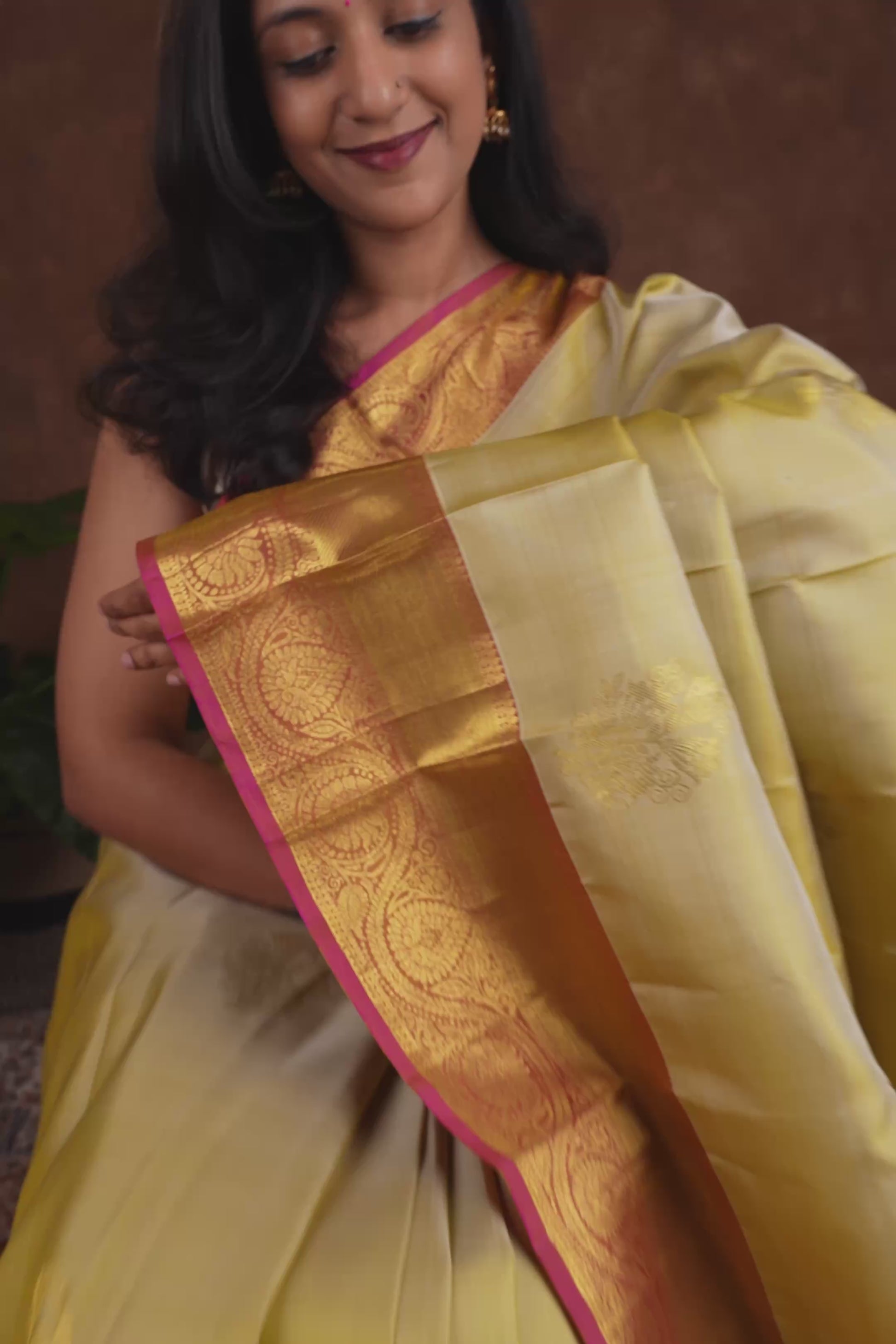Golden Beige Pure Kanchipuram Silk Handloom Saree