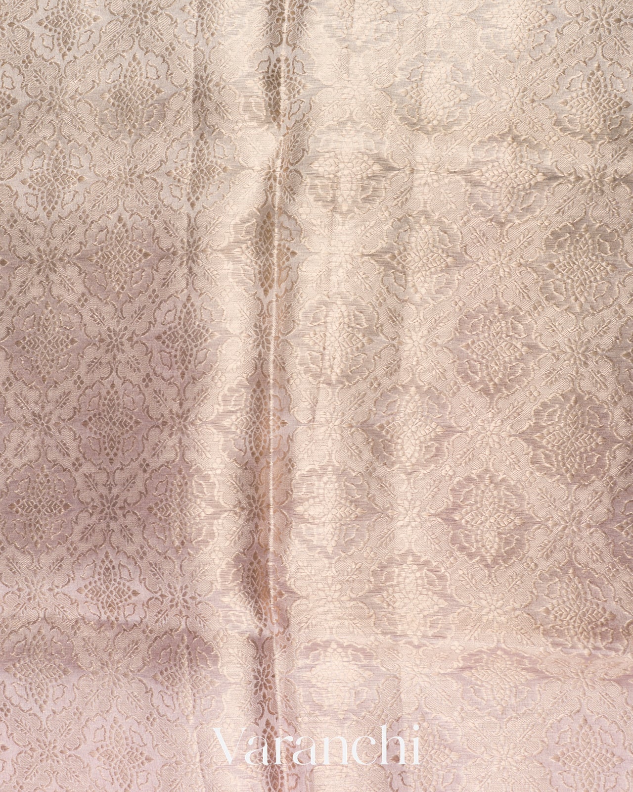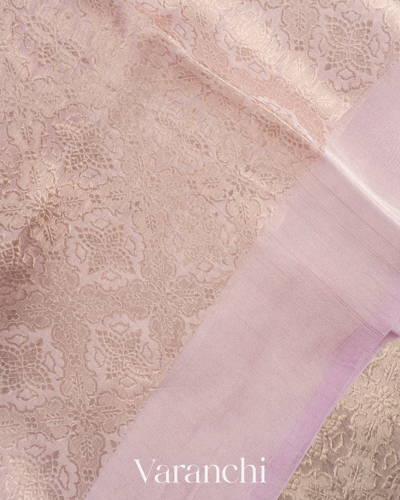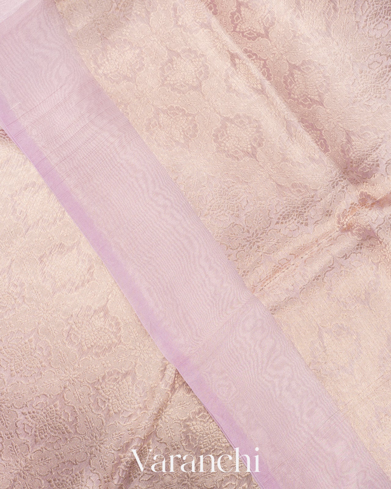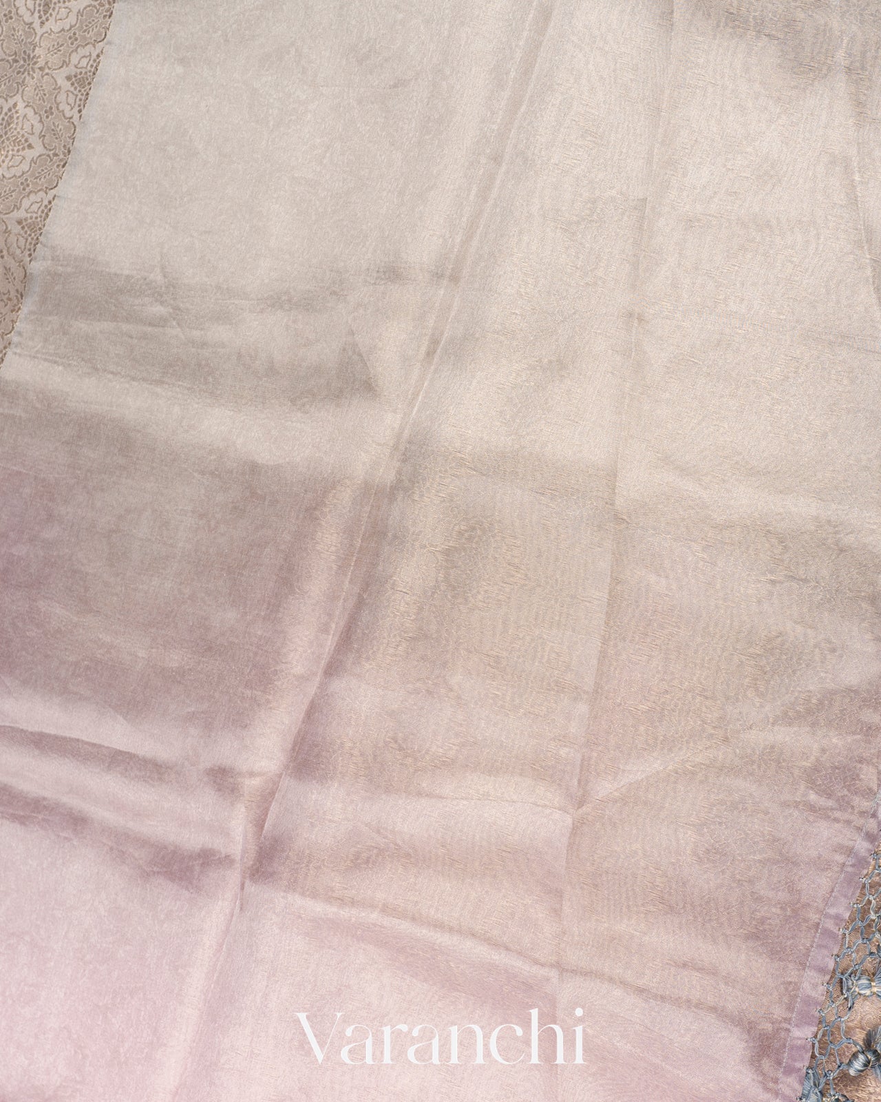 Grey And Lavender Ombre Heavy Brocade Pure Tissue Kora Silk Saree