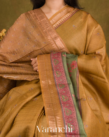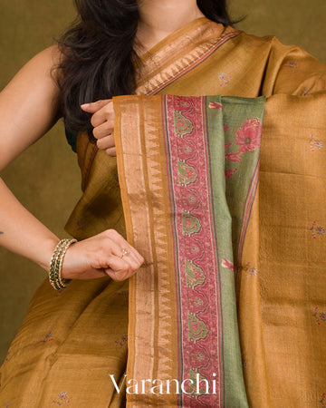 Mustard Brown Digital Printed Pure Tussar Silk Saree