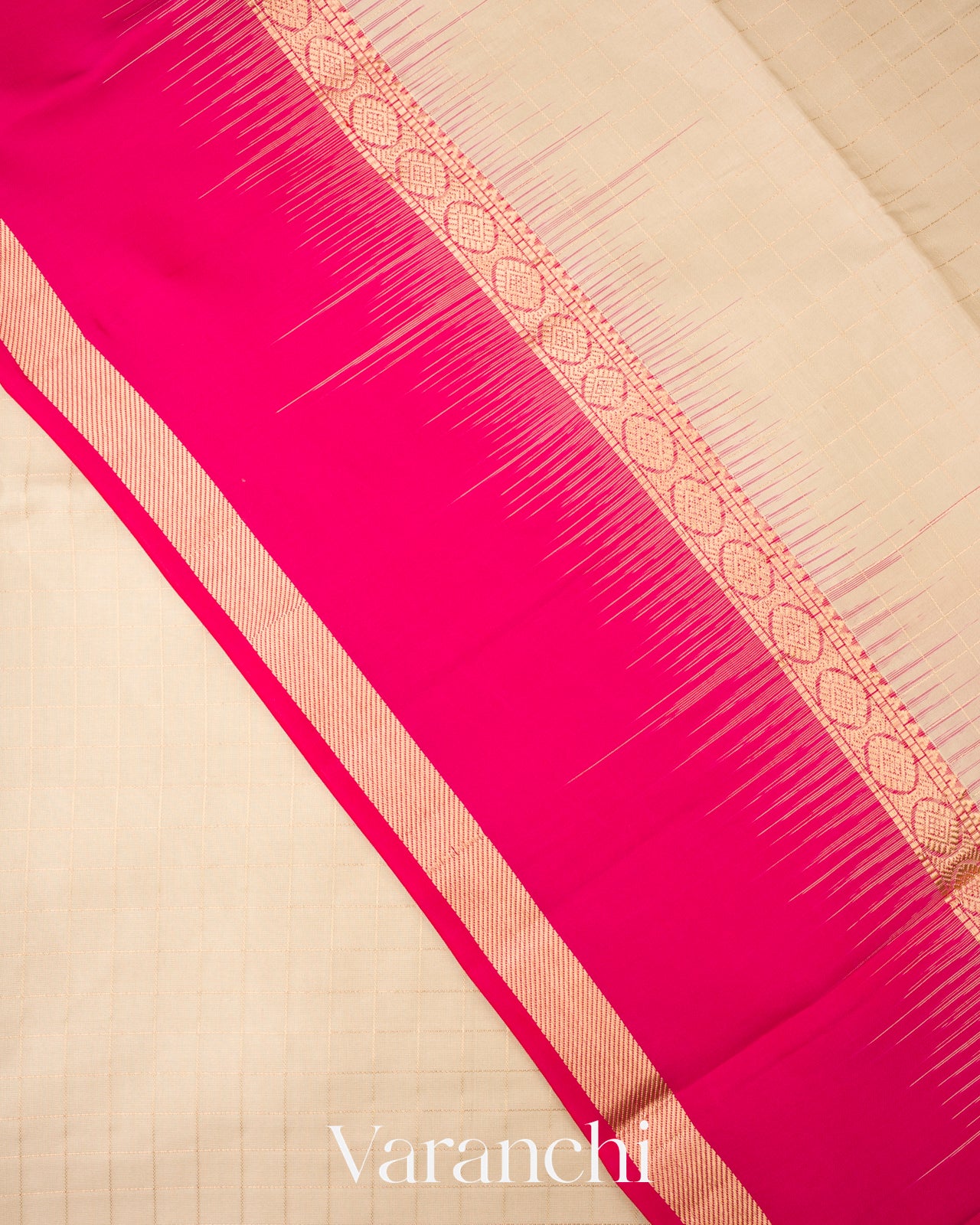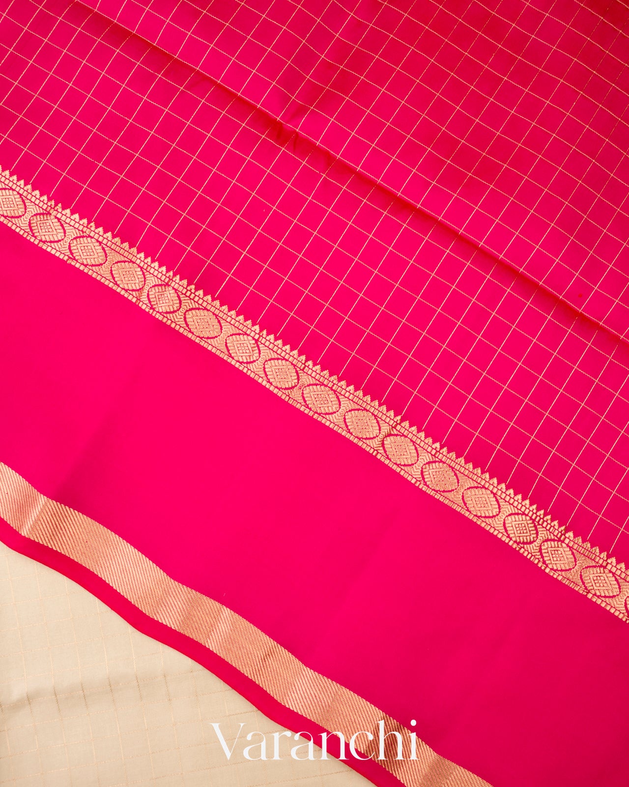 Blouse Piece Included in Rani Pink Colour With Checks (1 mt. approx) |
