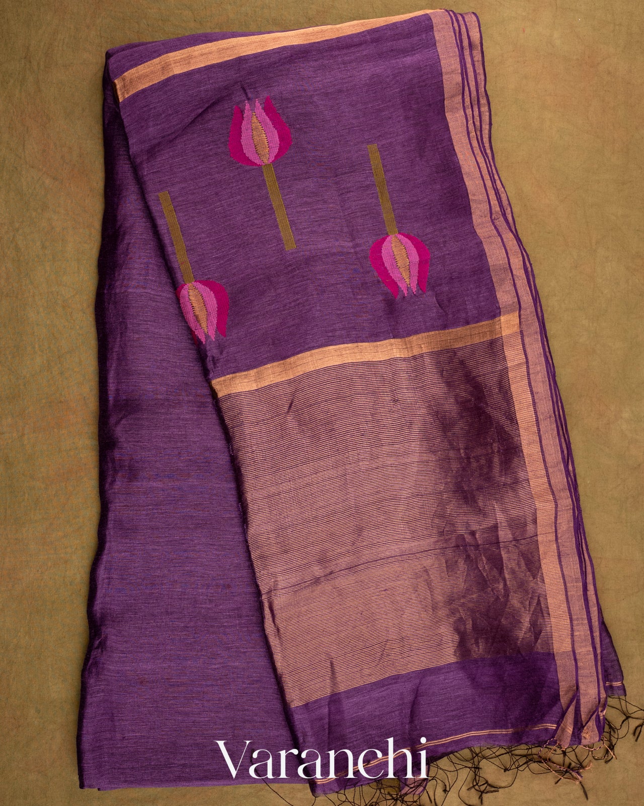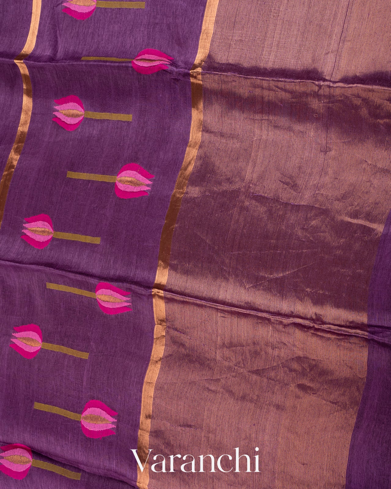 Jamun Purple Jamdani Pure Silk Linen Handloom Saree
