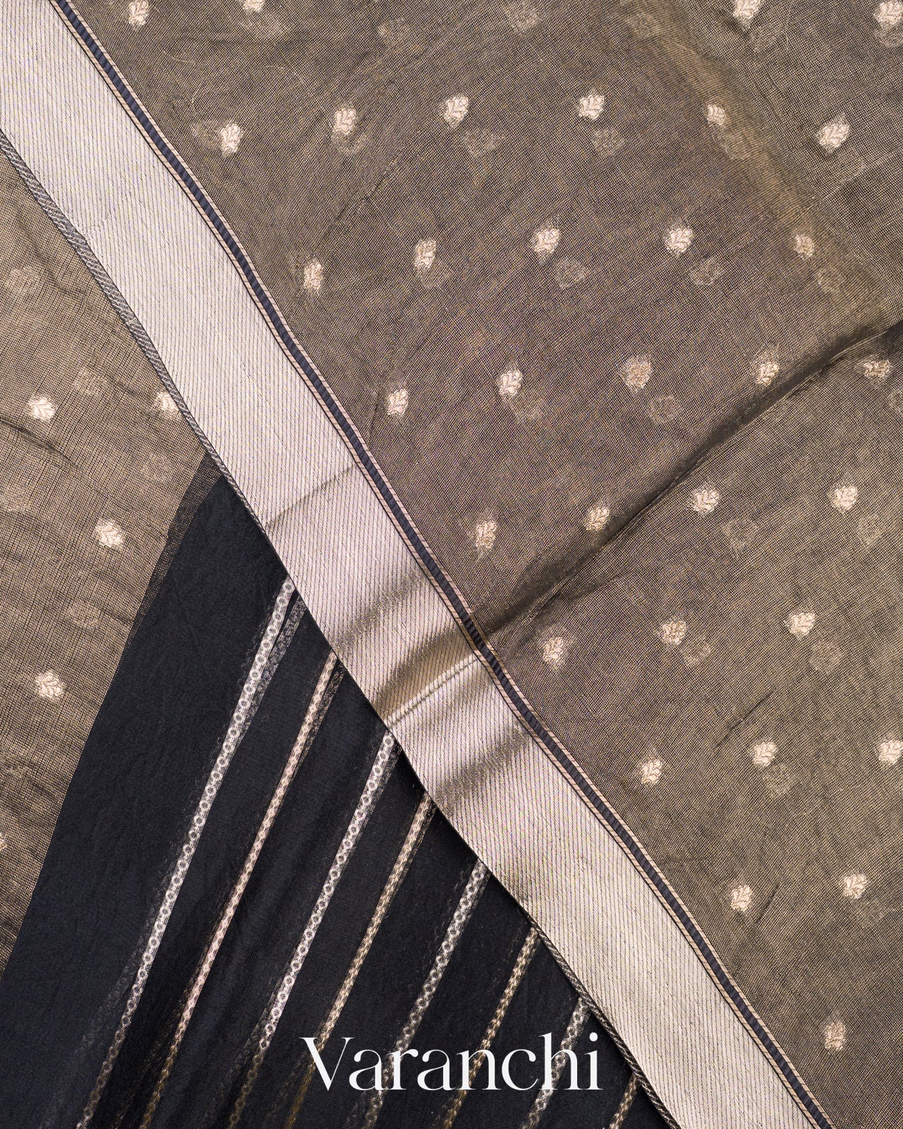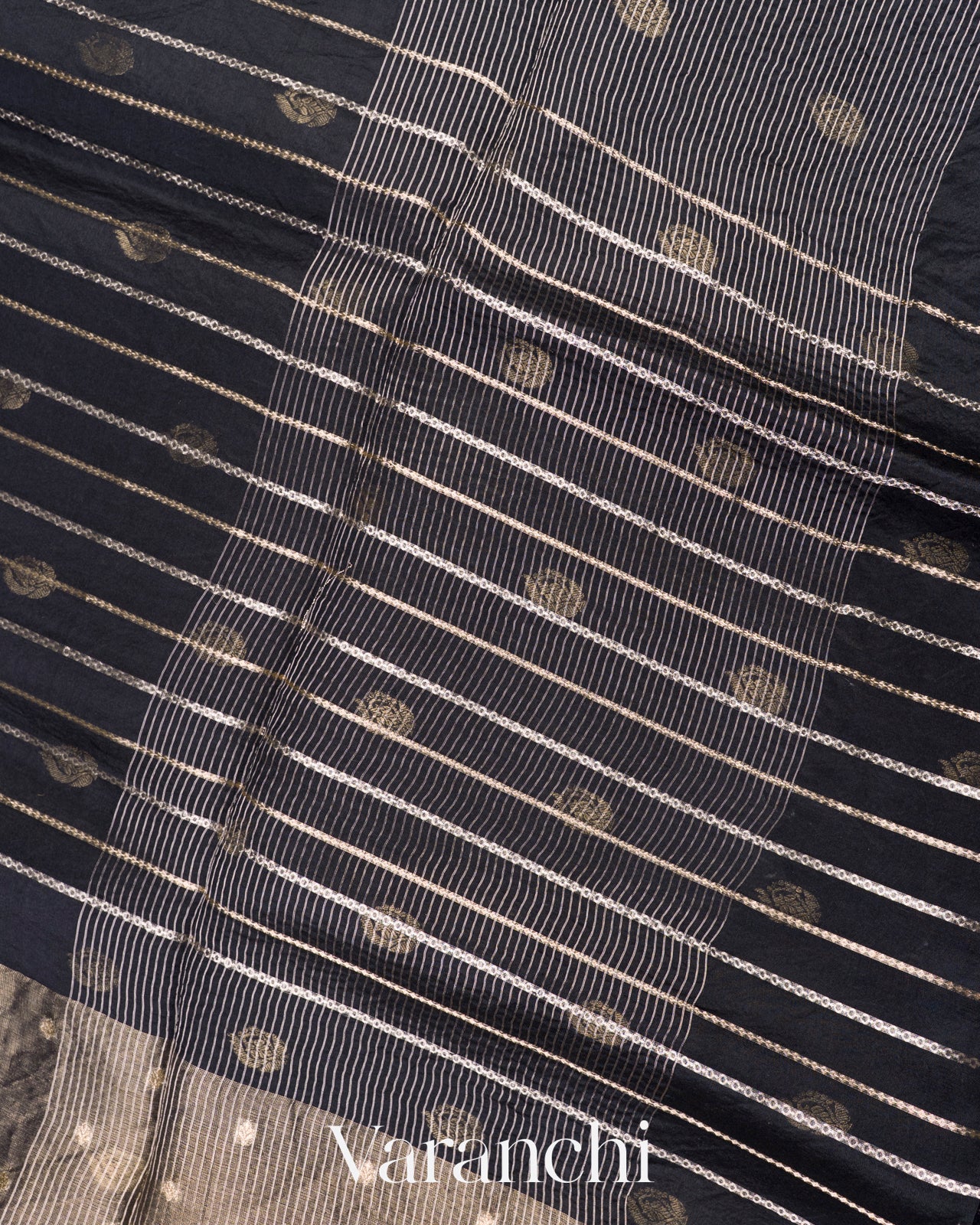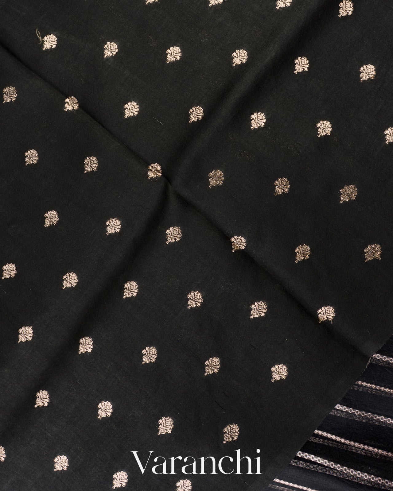 Jet Black Tissue Pure Kora Silk Saree