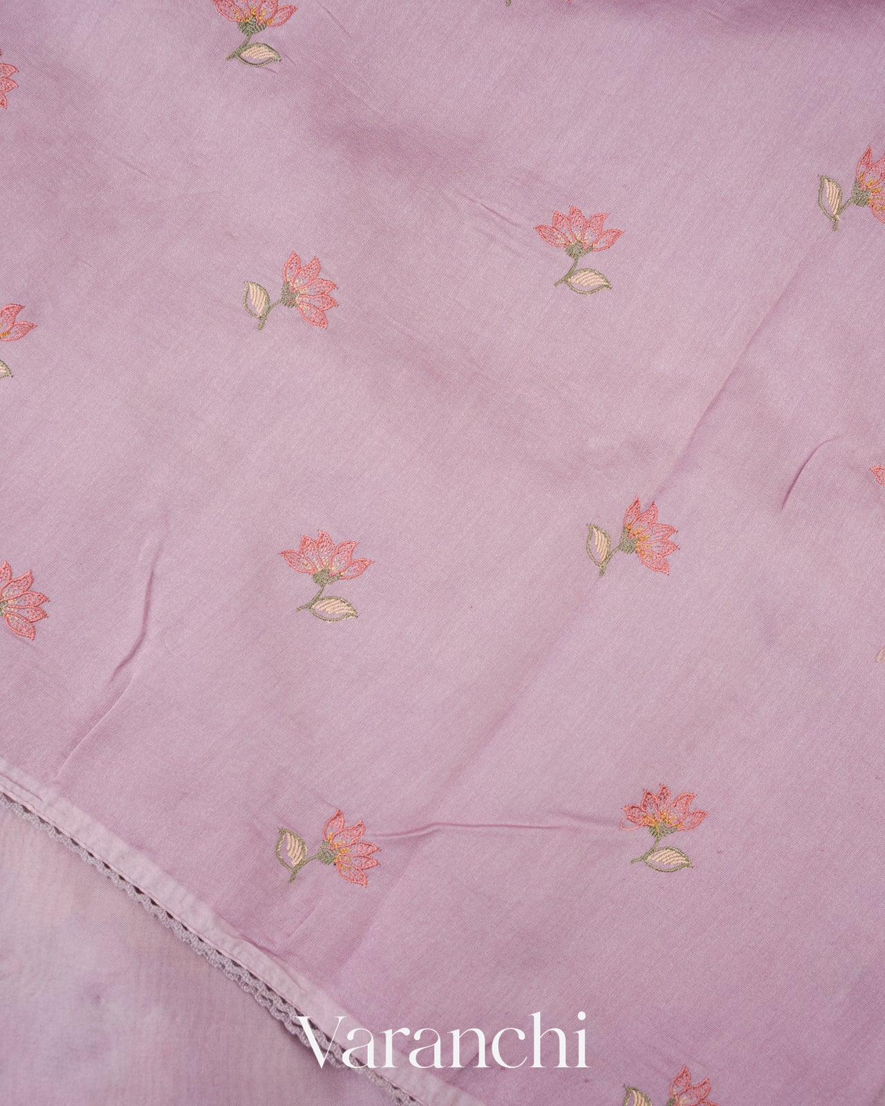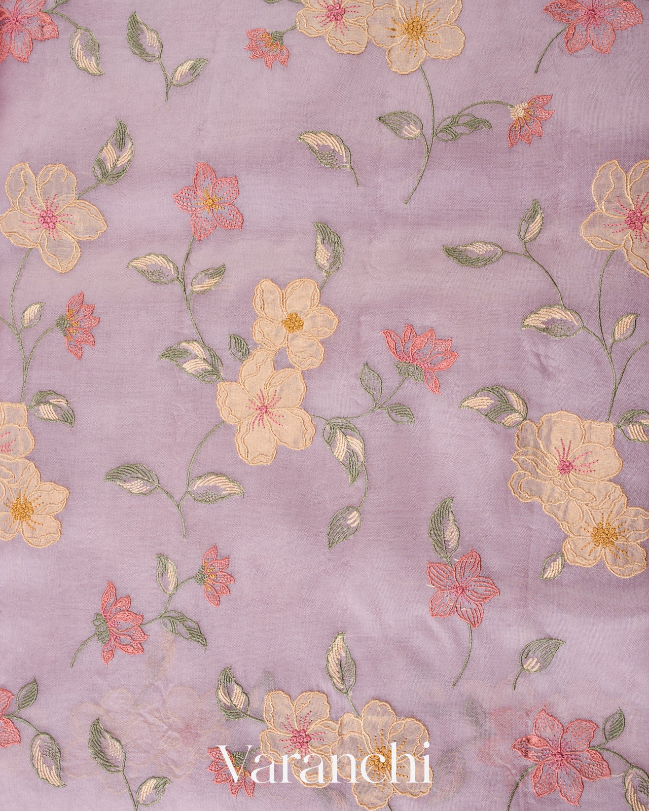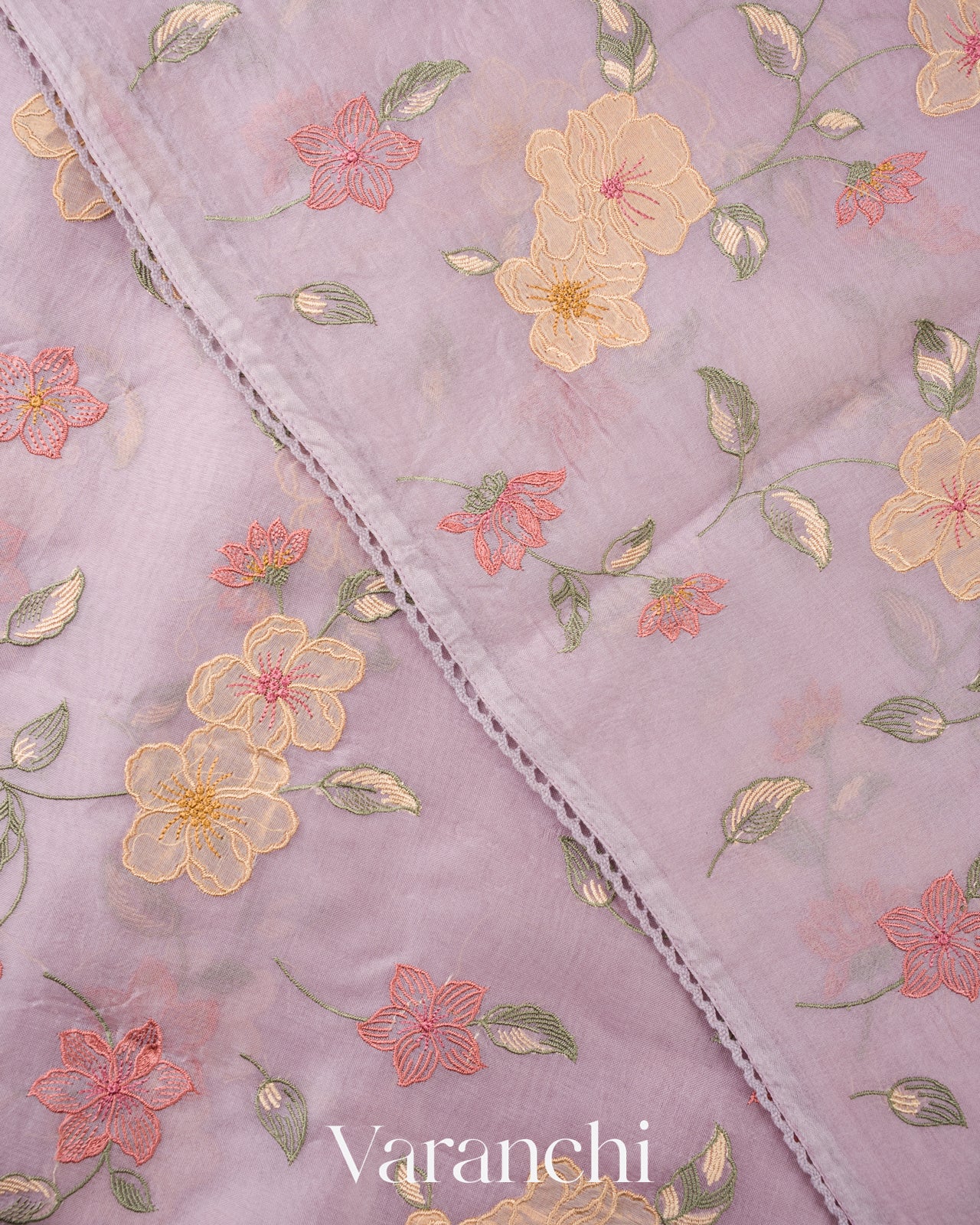 Lavender Floral Embroidered And Tissue Applique Pure Kora Silk Saree