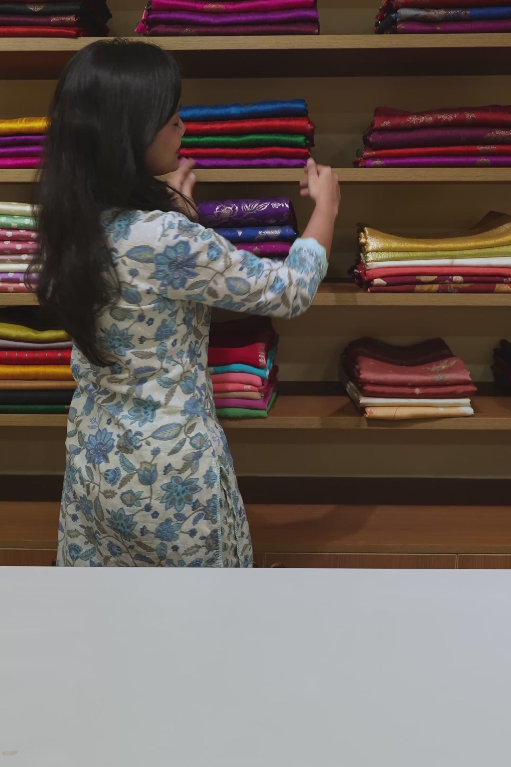 Blouse Piece Included in Self-Colour with Floral Embroidery (1 mt. approx) |
