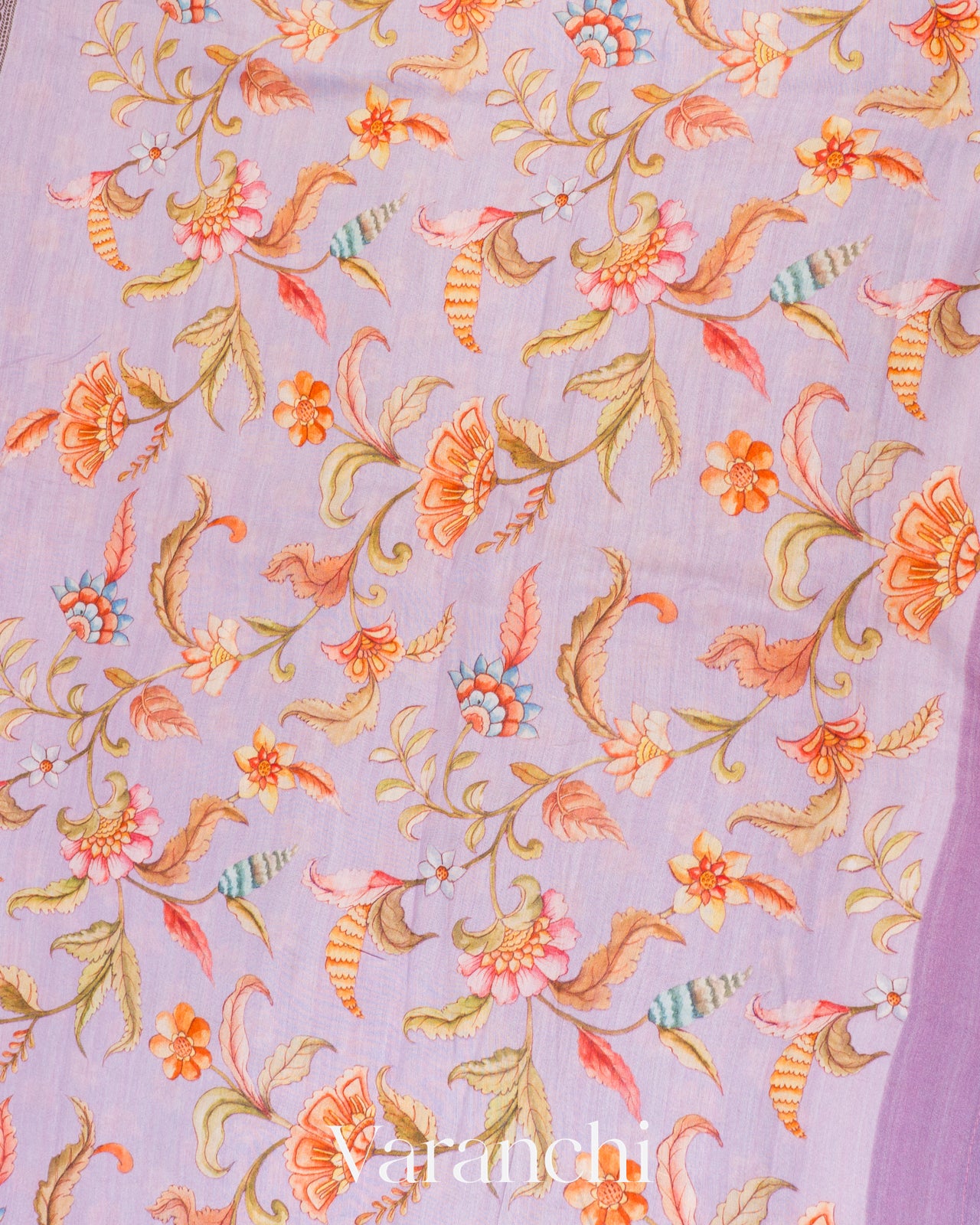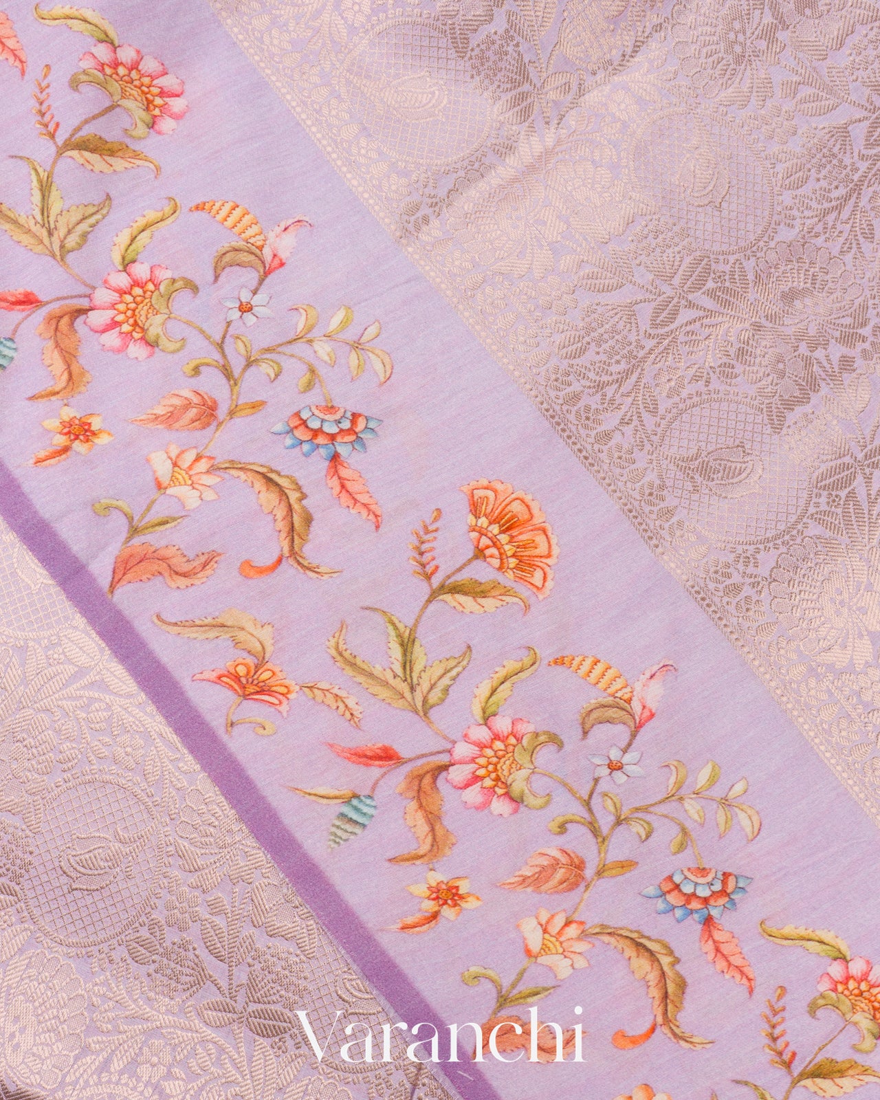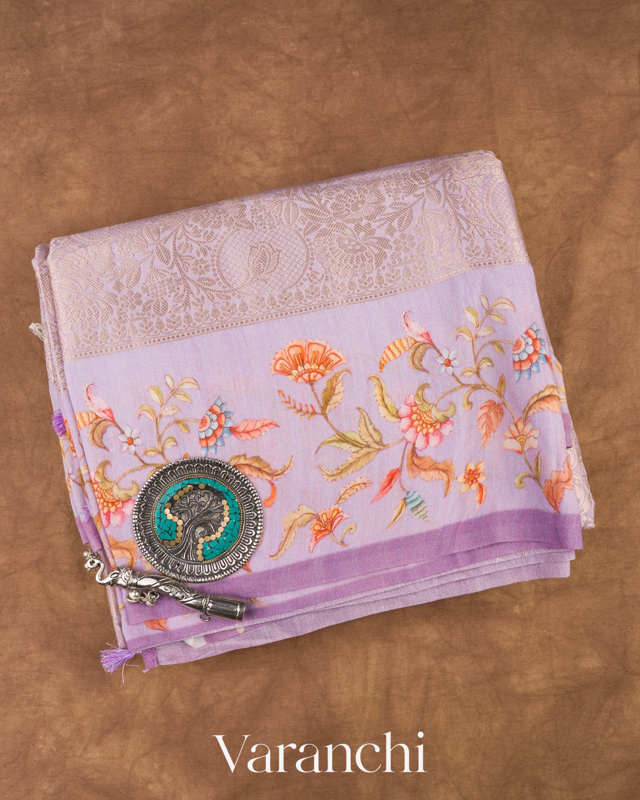 Lavender Heavy Brocade Pure Mul Chiniya Silk Saree