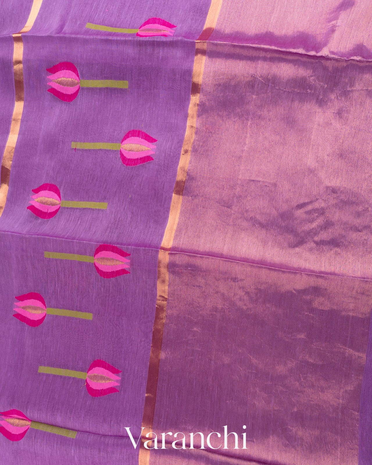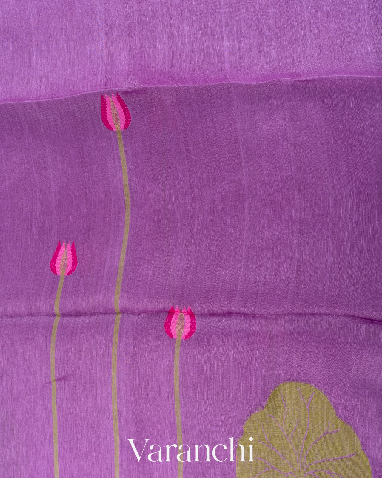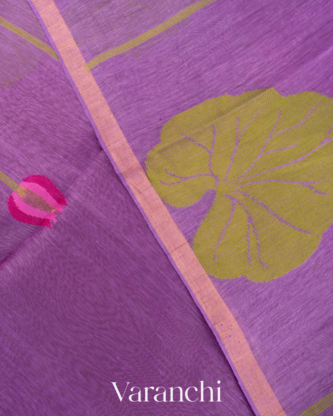 Lavender Jamdani Pure Silk Linen Handloom Saree