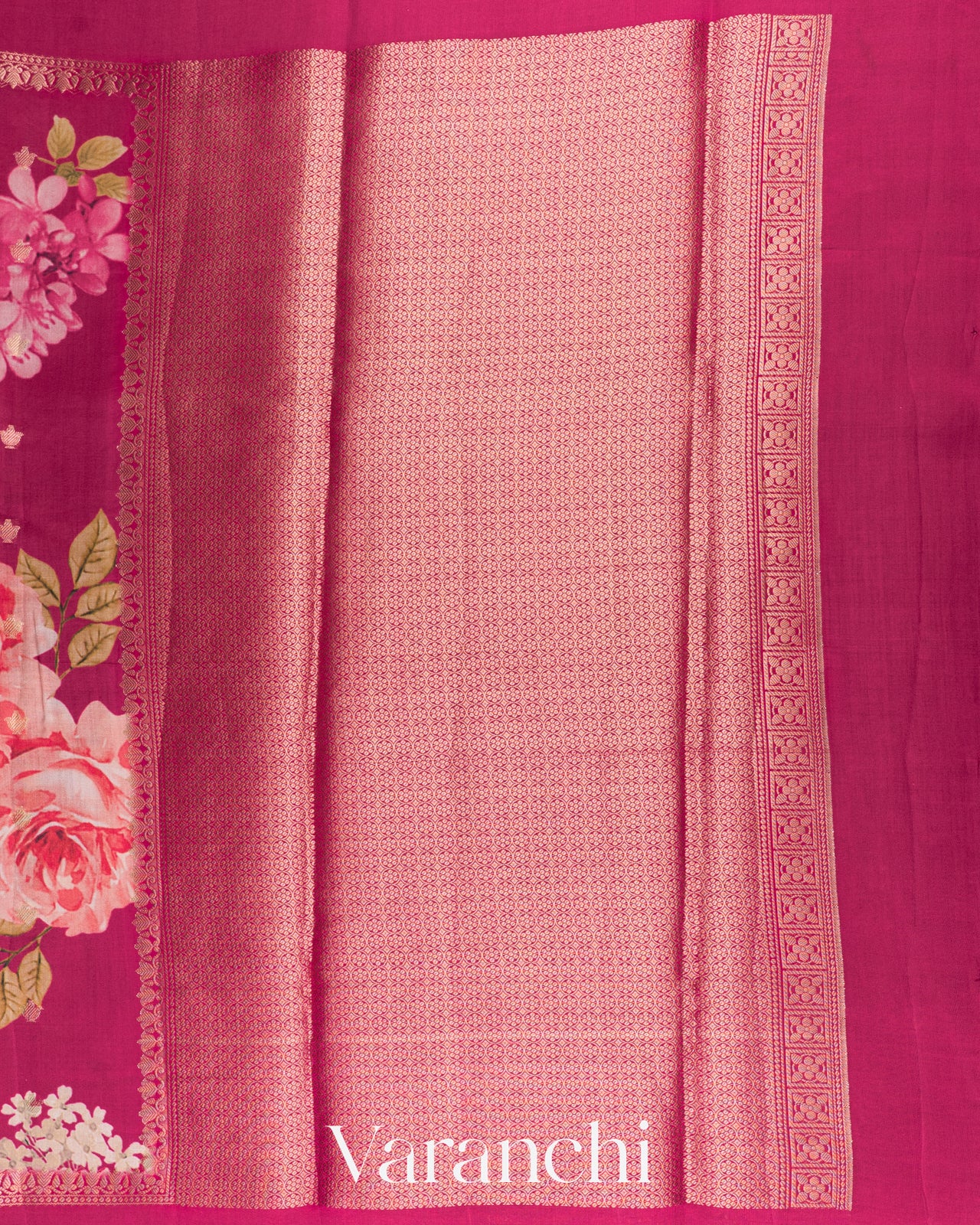 Light Burgundy Digital Printed Pure Chiniya Silk Saree