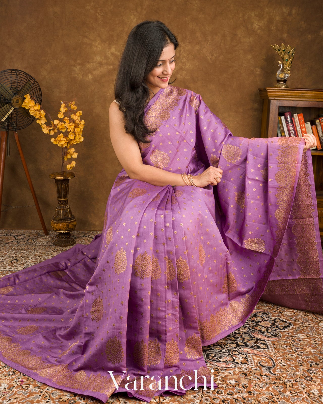 Light Lavender Pure Chiniya Silk Handloom Saree
