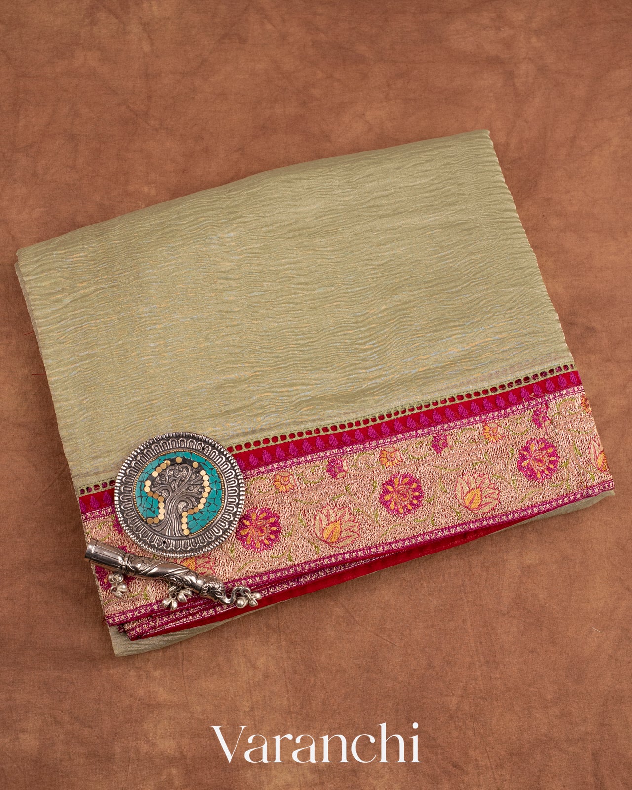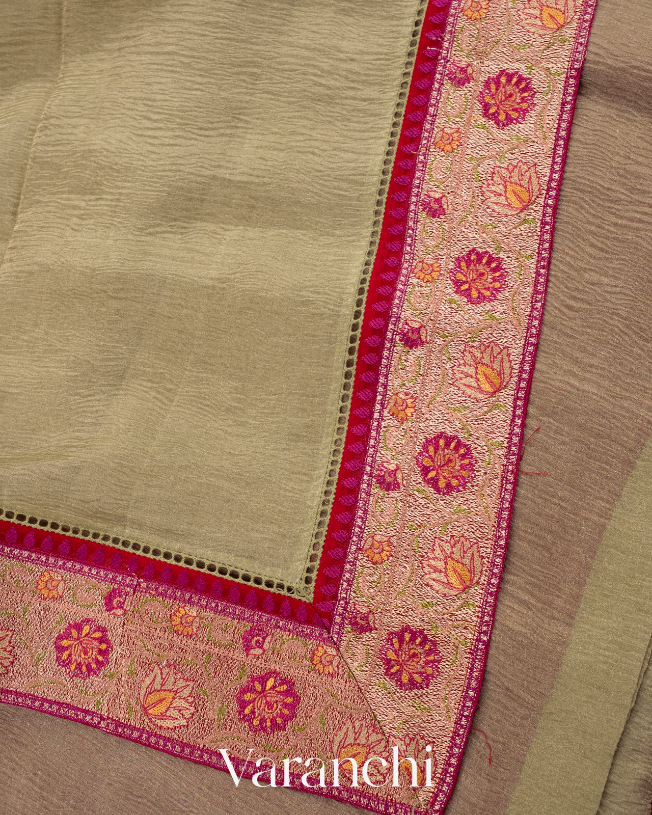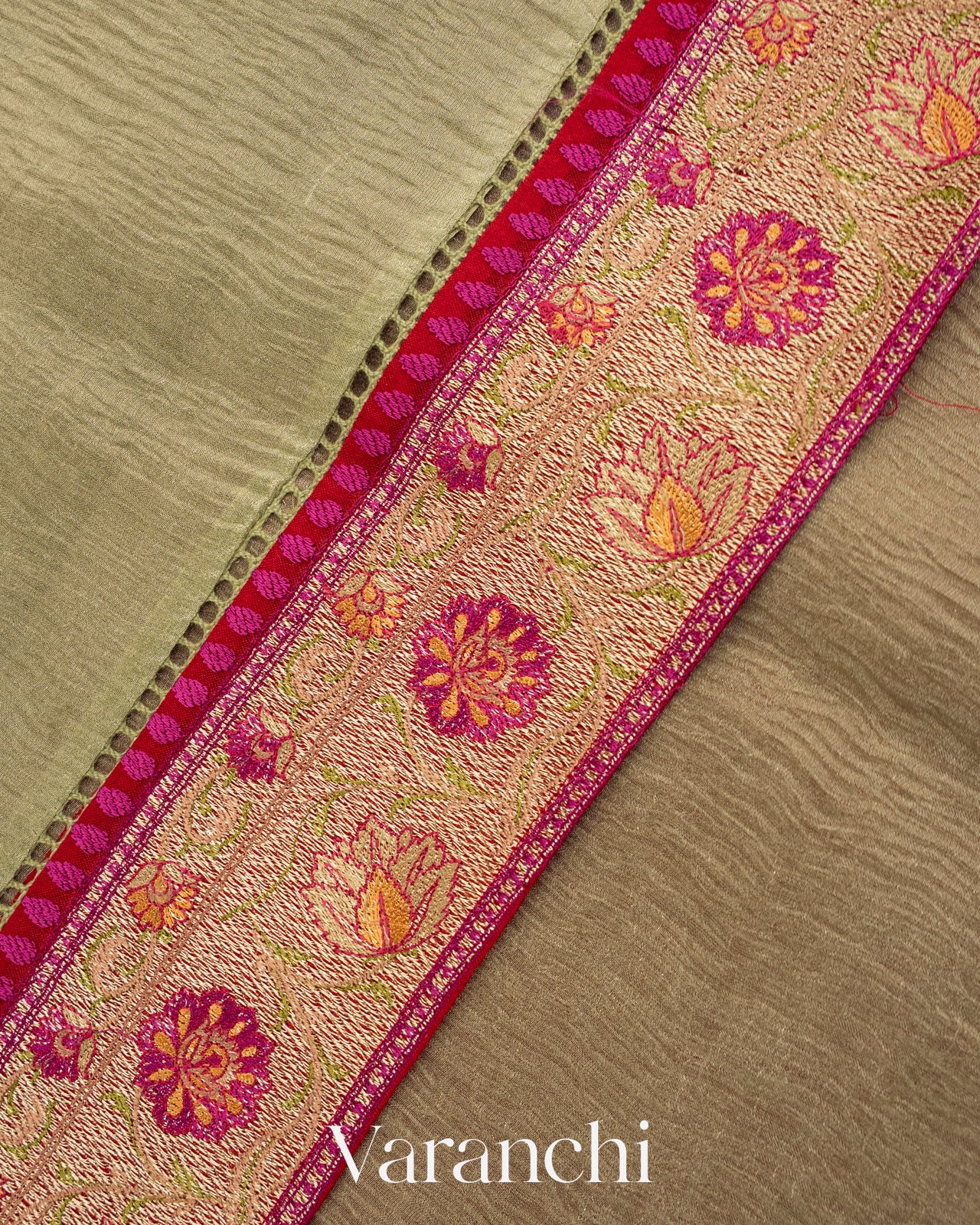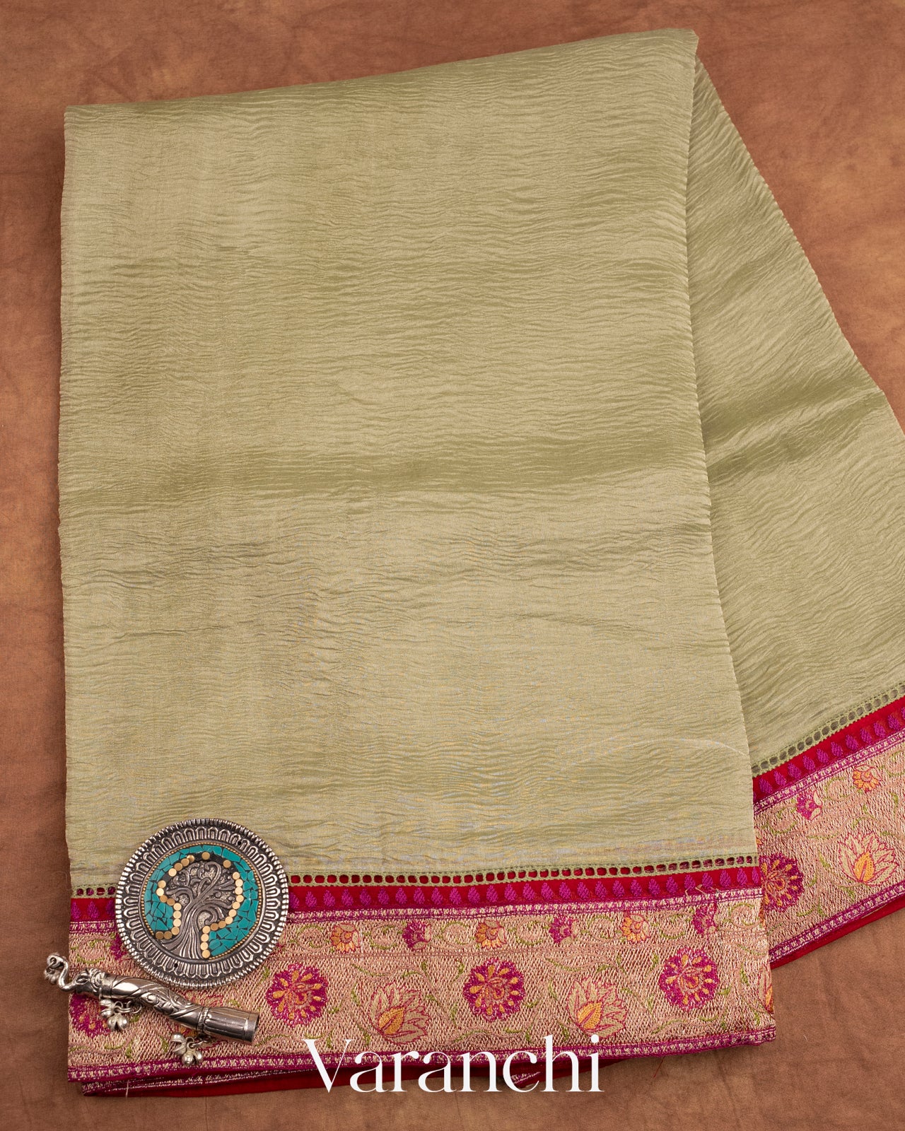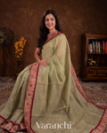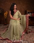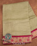 Light Pista Green with Paithani Embroidery Pure Crush Tissue Kora Silk Saree